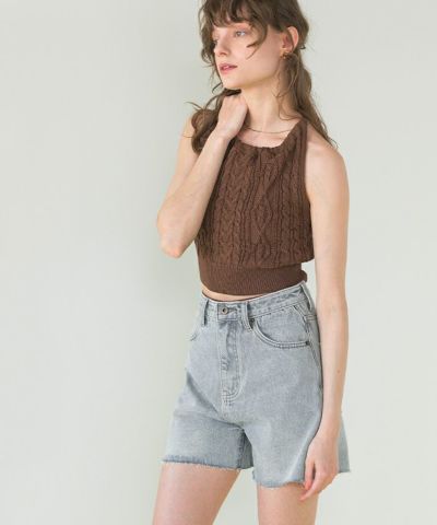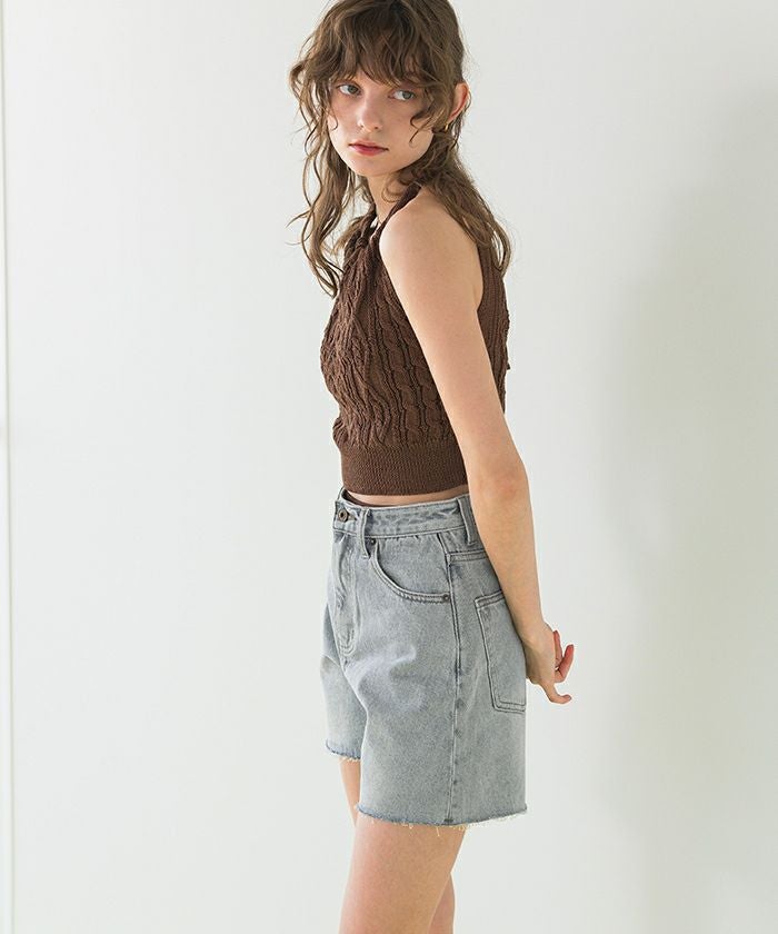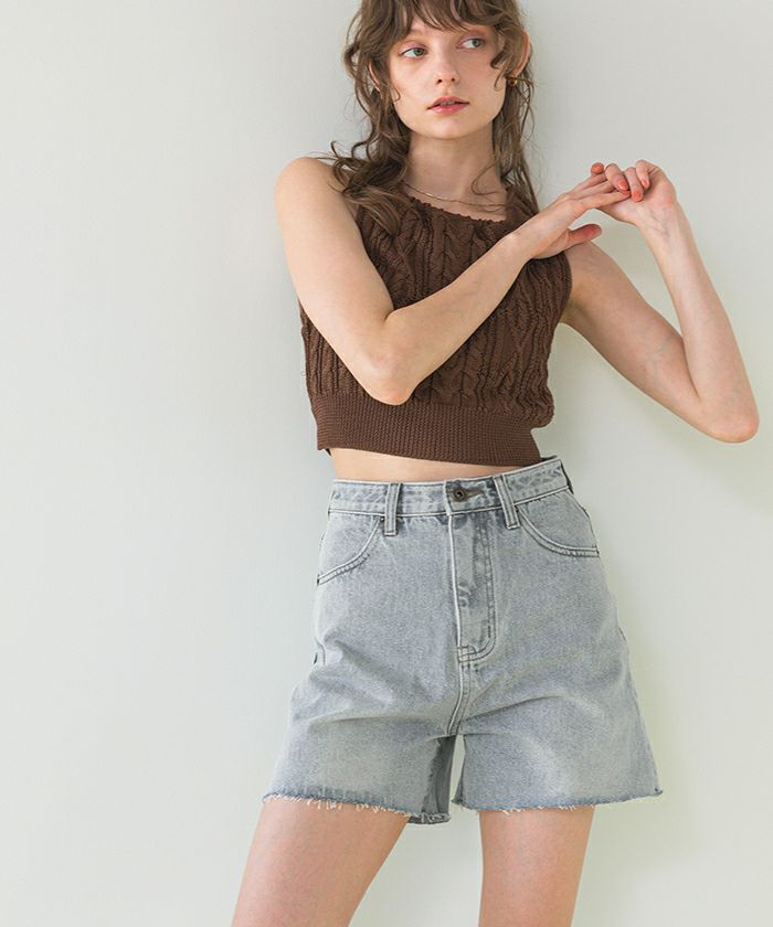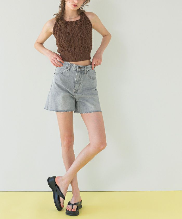 ハイウエストデニムショートパンツ【SEADRESS シードレス】【メール便可/80】