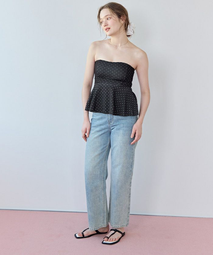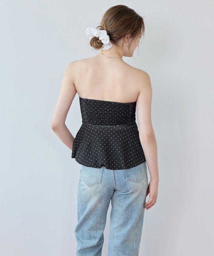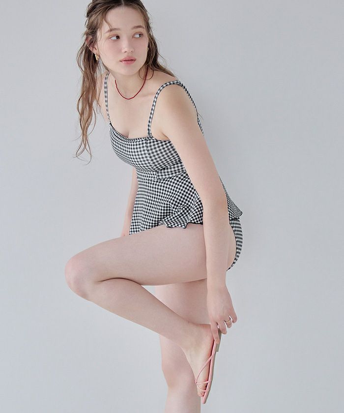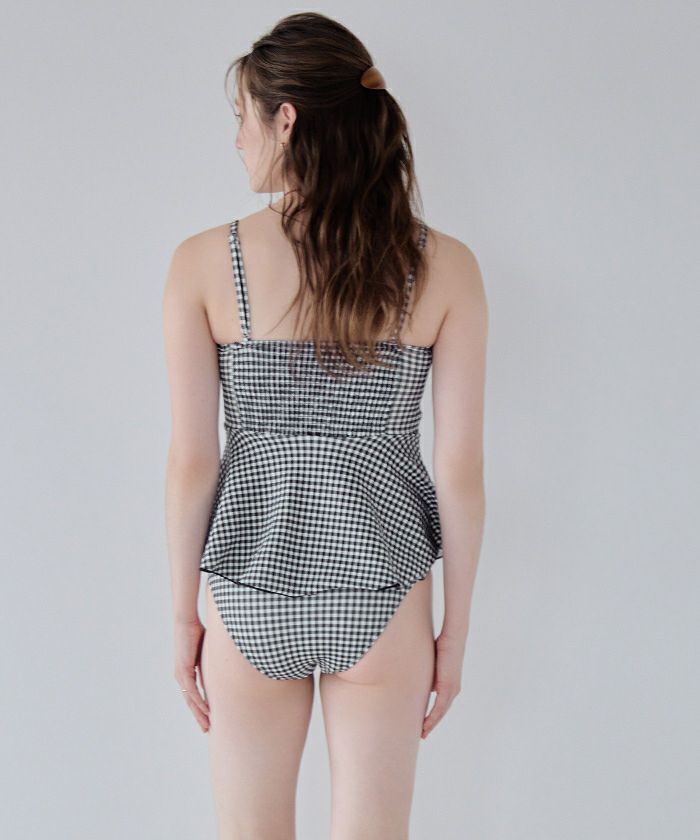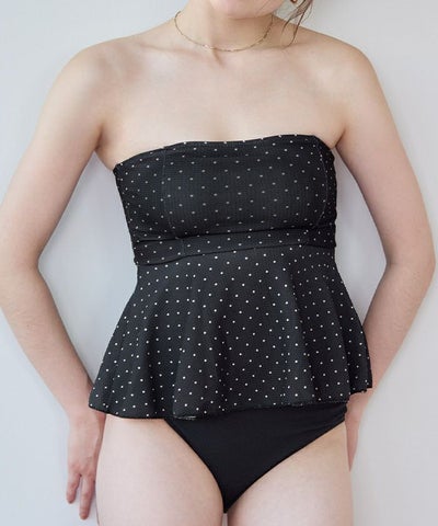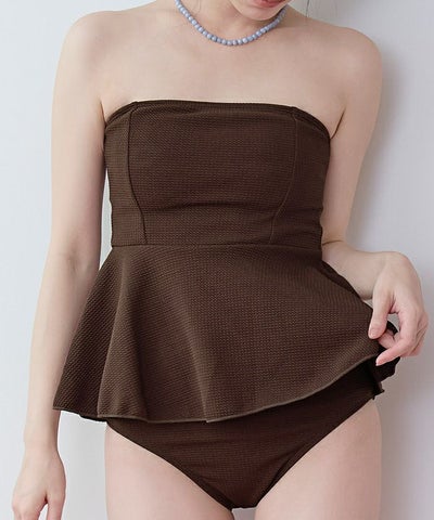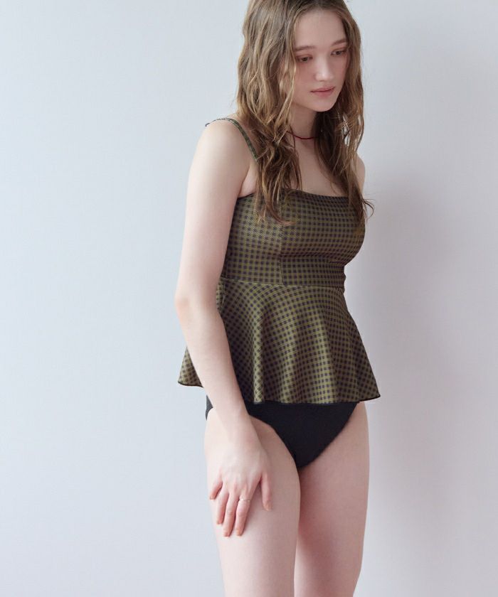 ・表面変化のある素材を使用したペプラムタイプのフレアビキニ。
