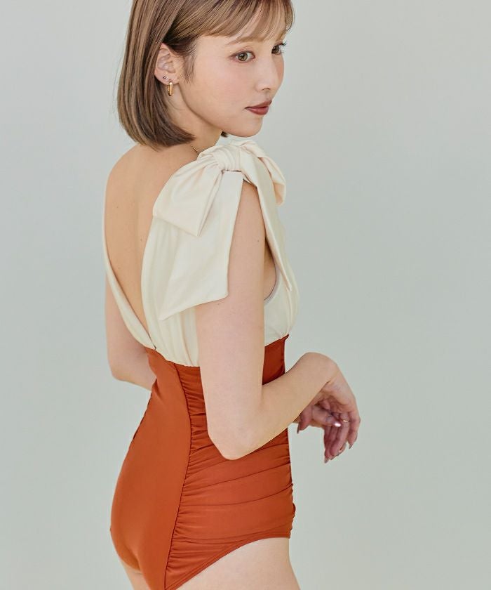 ・大人のリゾート感が漂うノンワイヤーギャザーワンピース。
