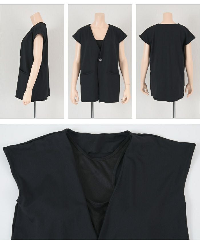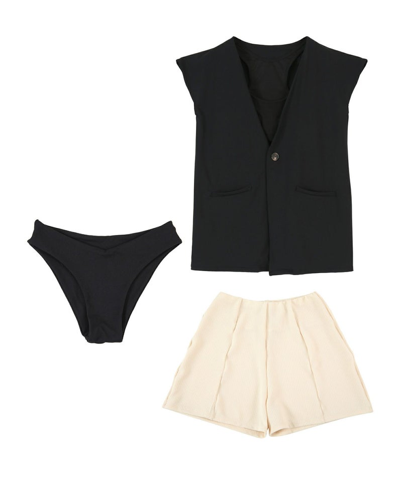 洗練されたジレトップスとトップインナーがセット構造になったデザインビキニ。