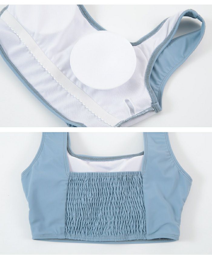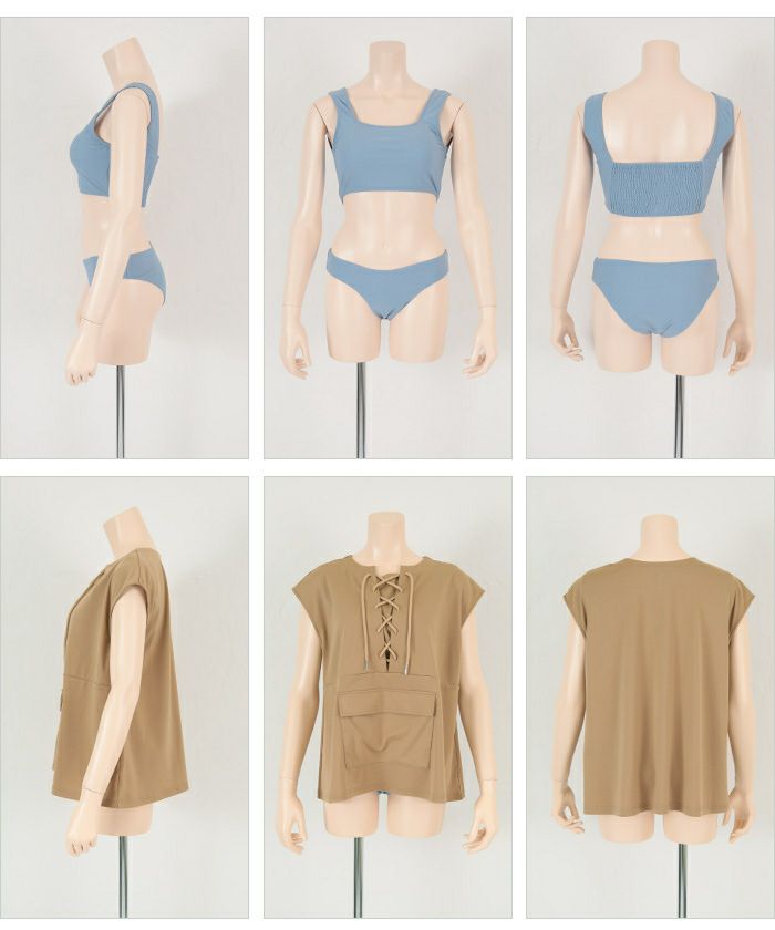 ビーチ映えするバイカラーのコントラストがアクセントのタンクトップ付きビキニ。