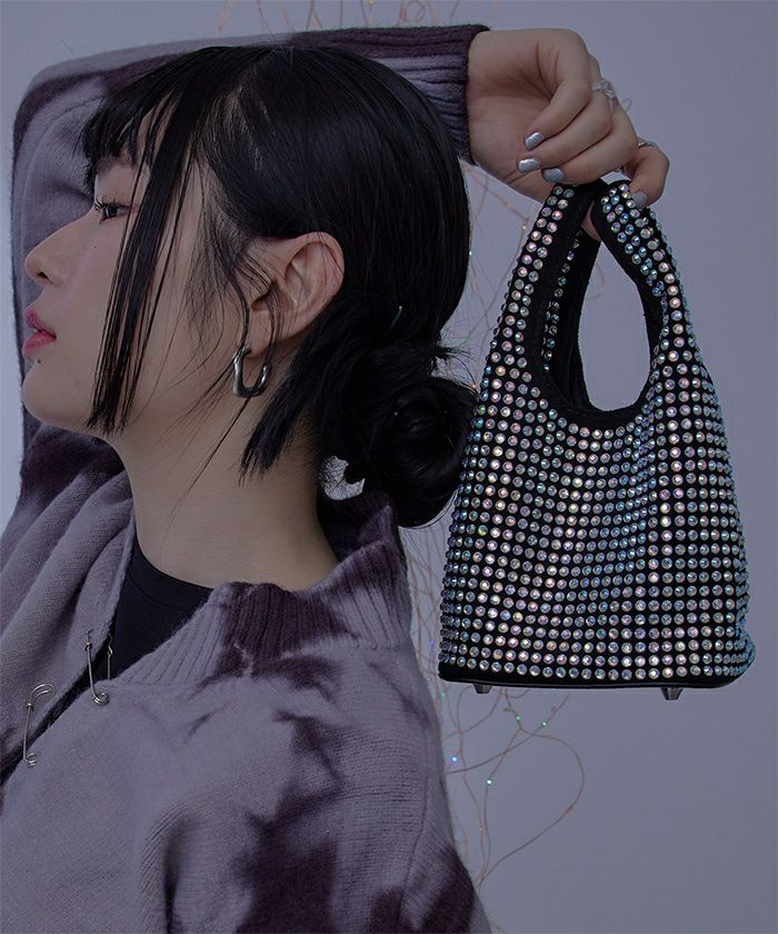 ・キラキラのラインストーンが目を引くバケットバッグ。