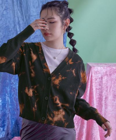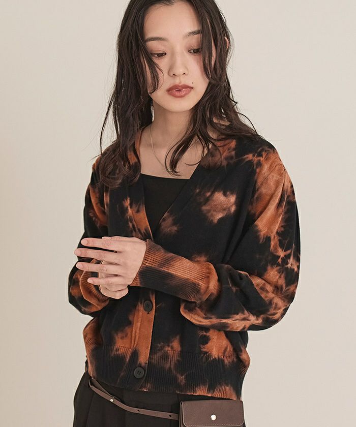 ムラ染めパフスリーブカーディガン【miette ミエット】