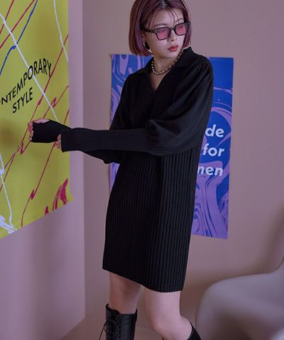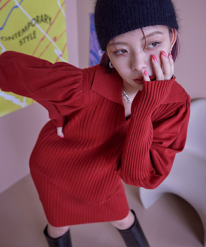 パフスリーブポロニットワンピース【miette ミエット】