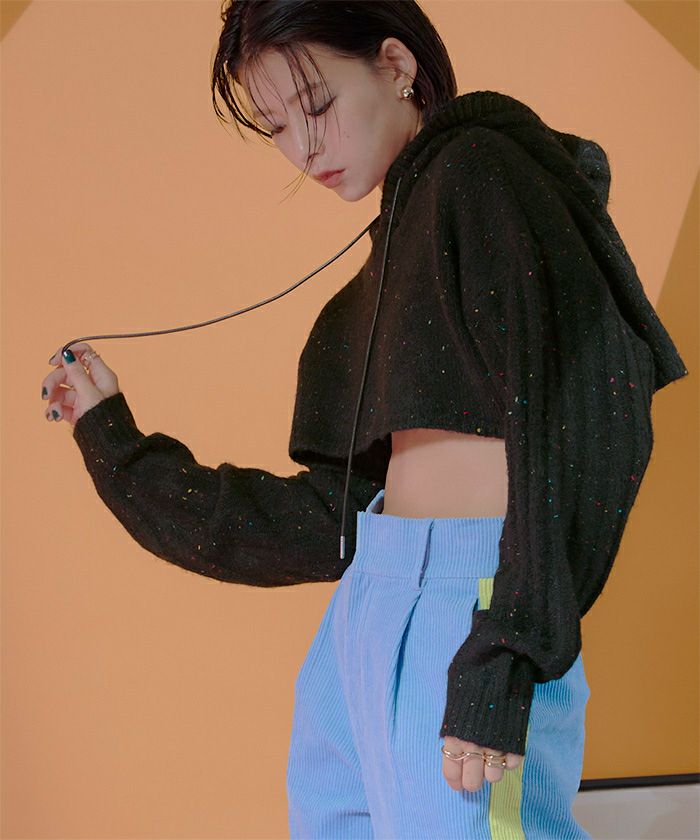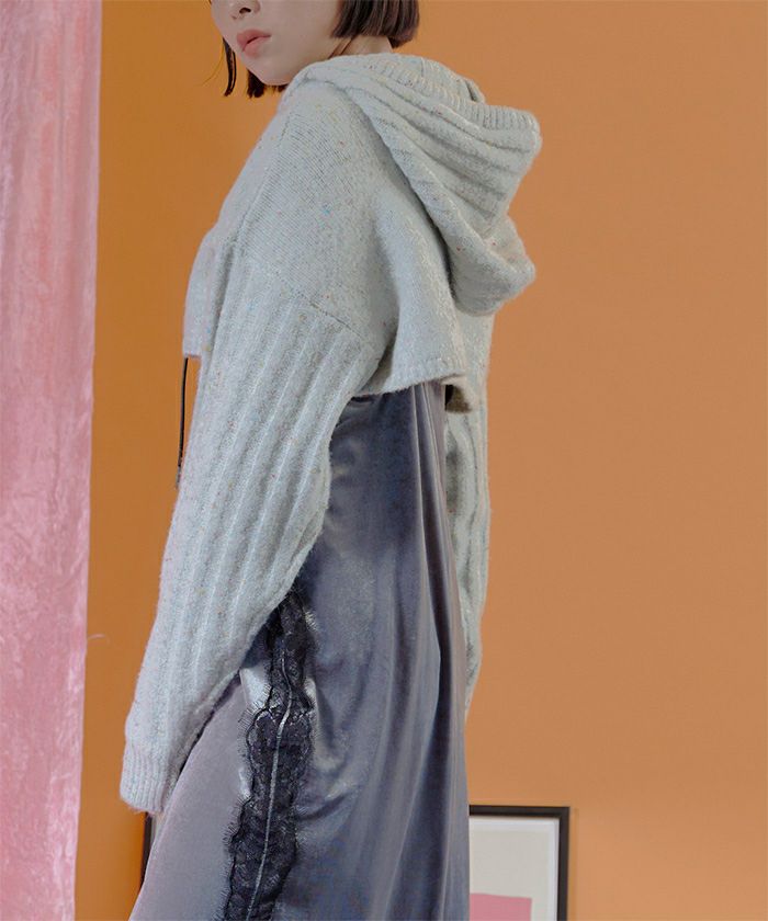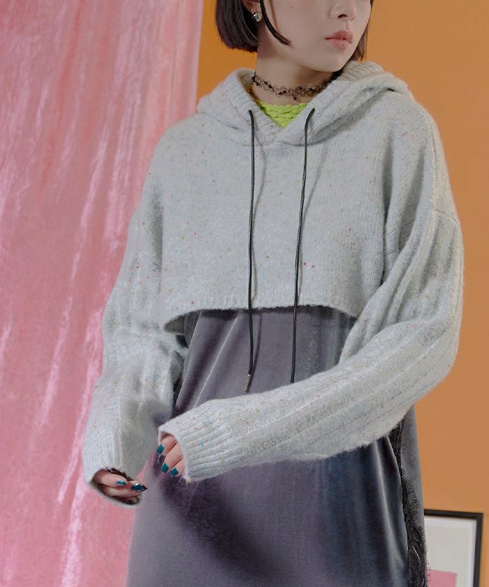 ・カラフルなネップが入った糸を使用したニットパーカー。