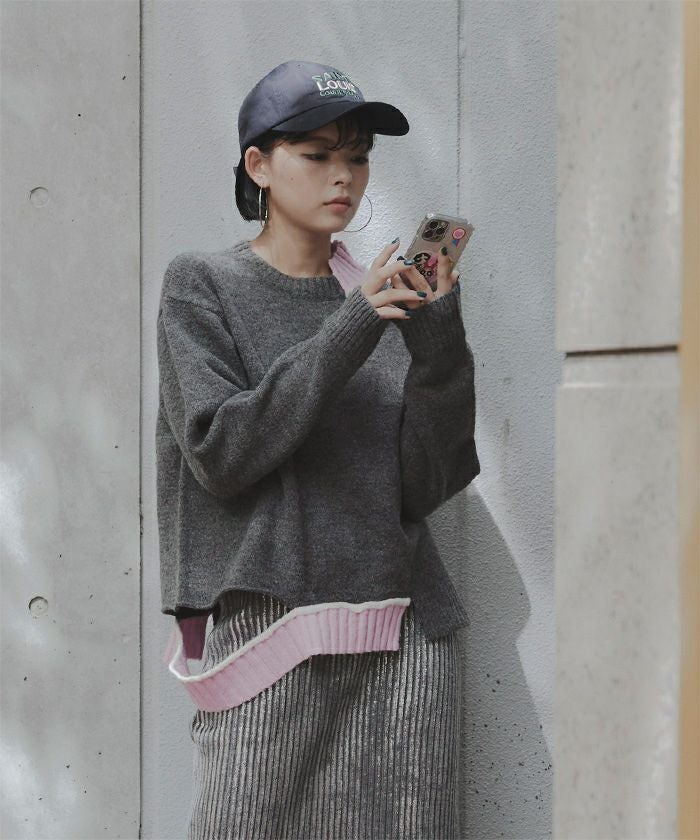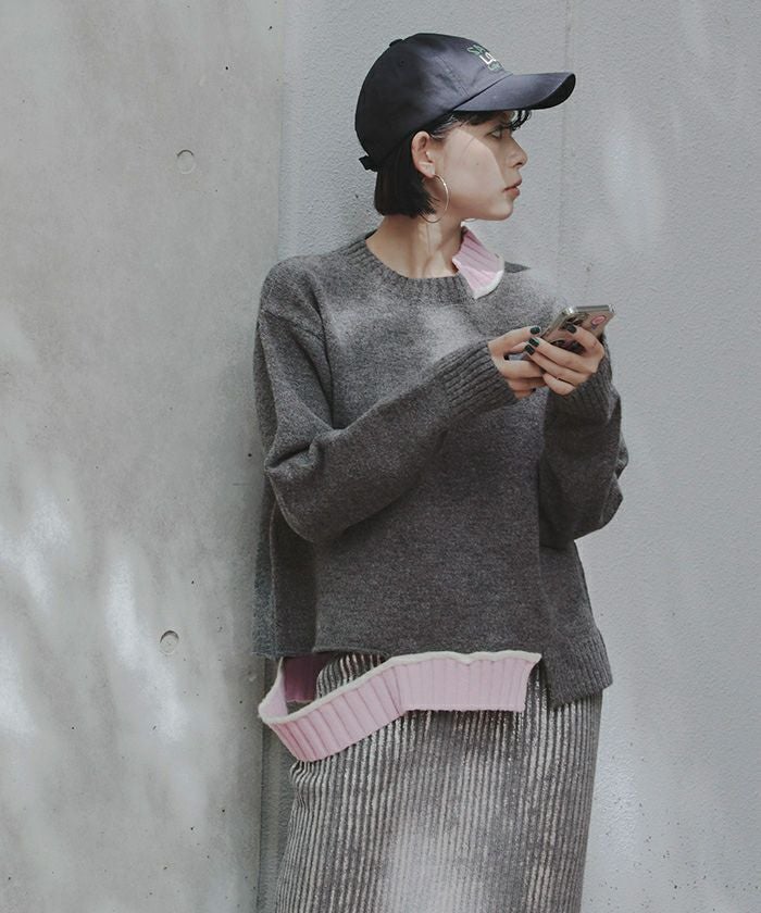 カットデザインアシンメトリーニット【miette ミエット】