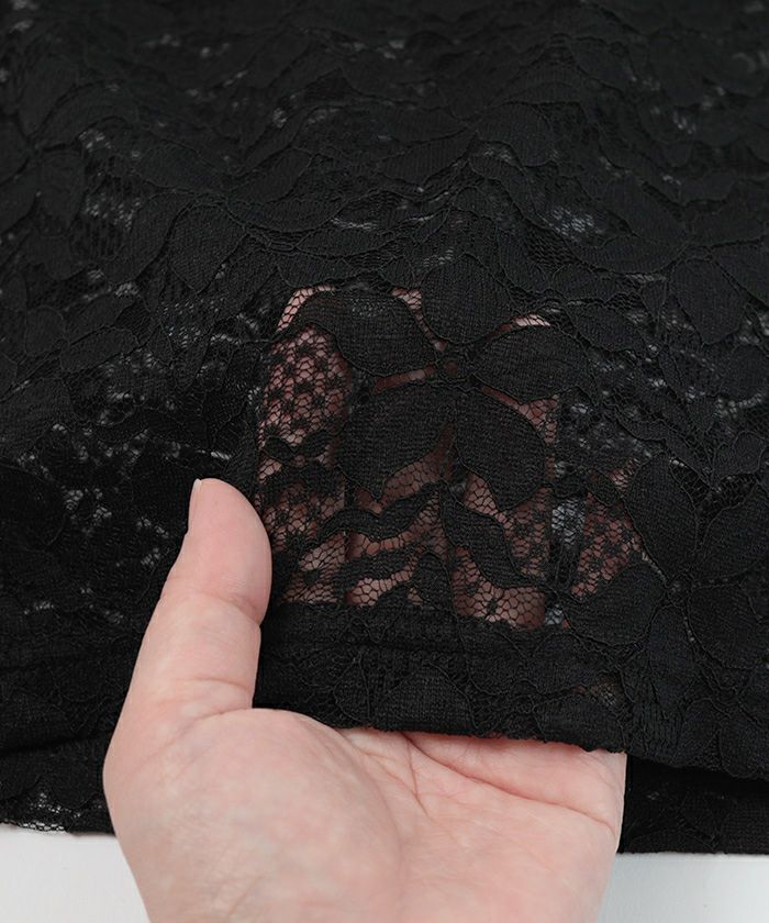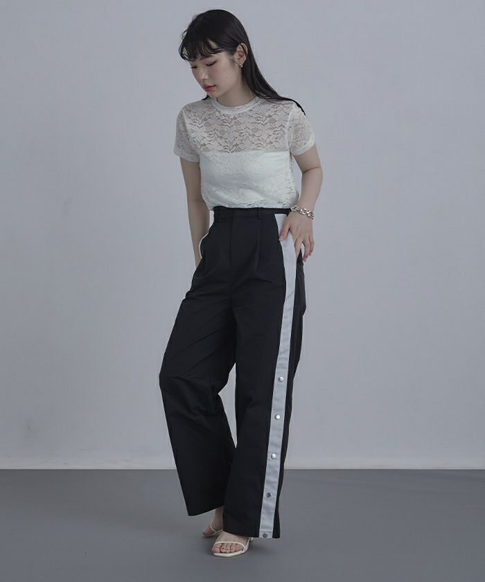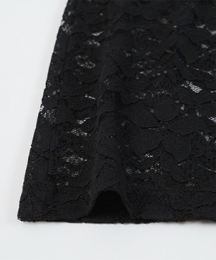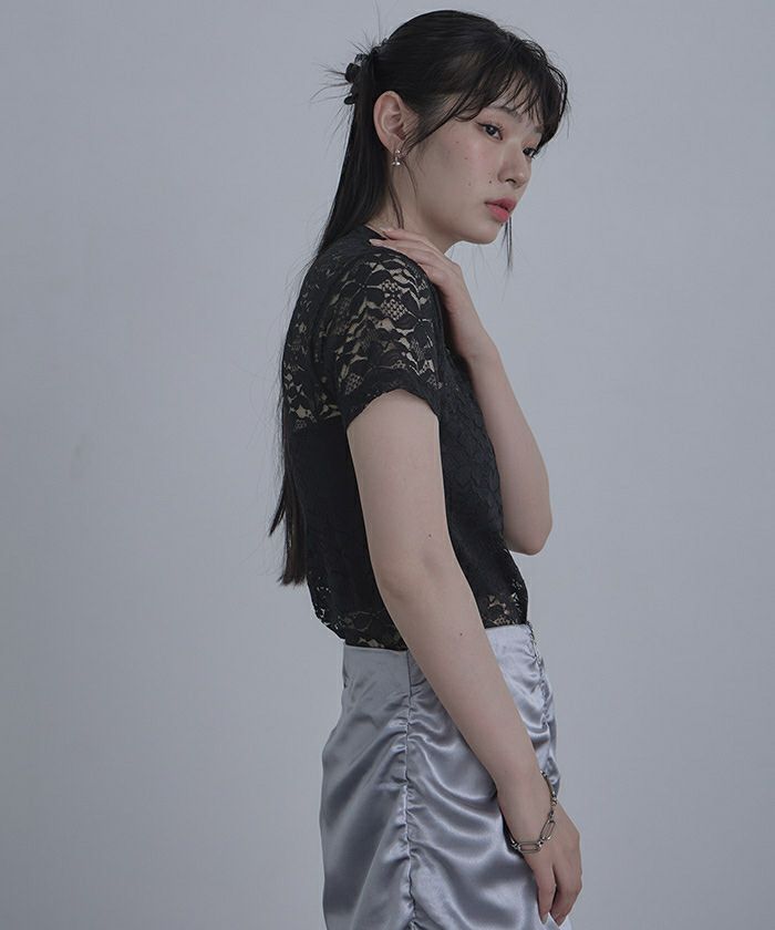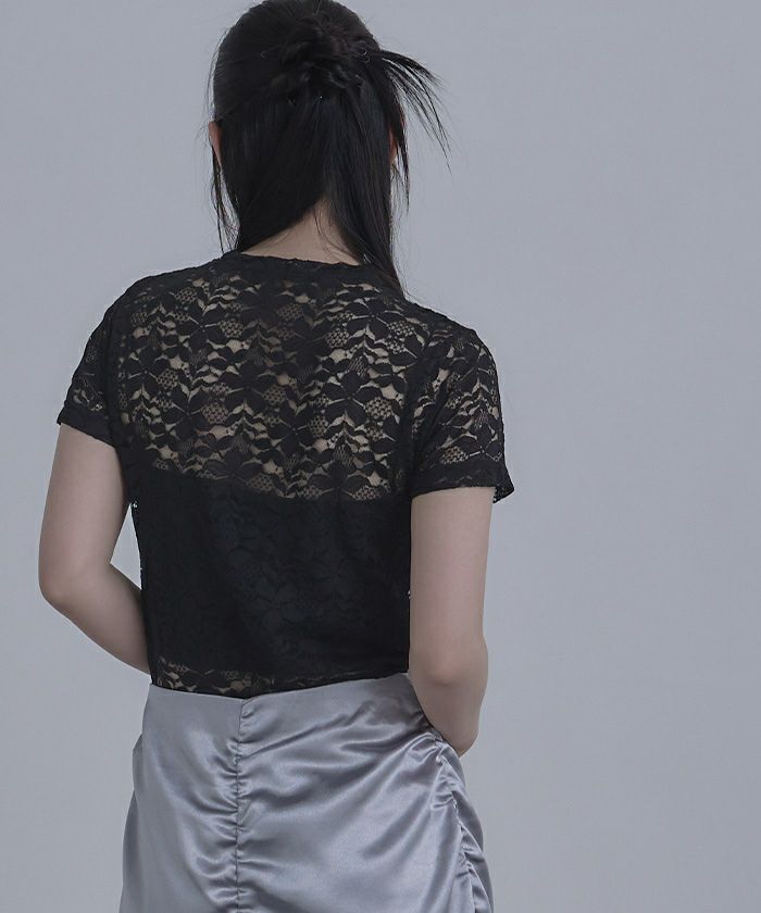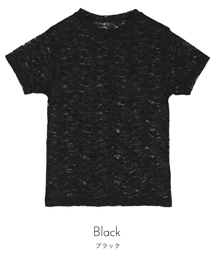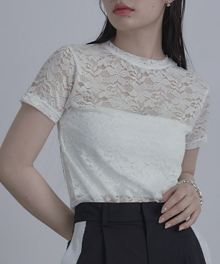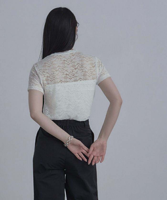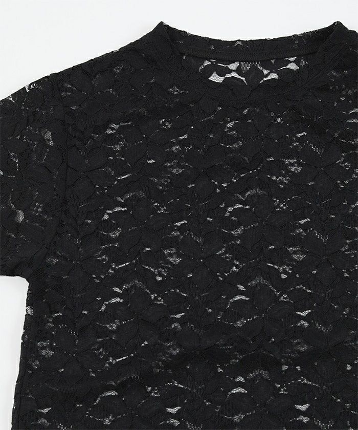 ・トレンド感のある総レースのTシャツ。