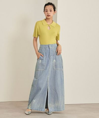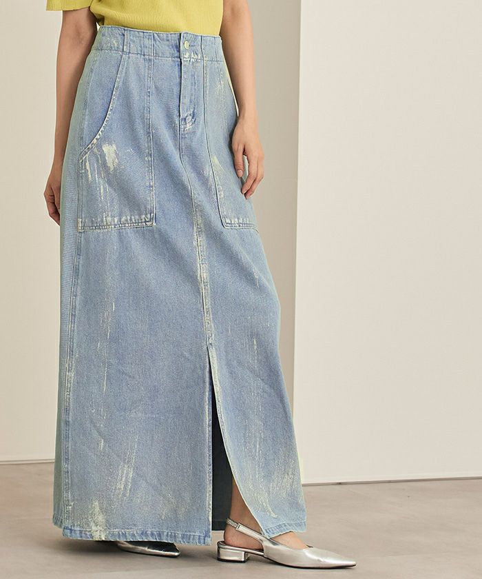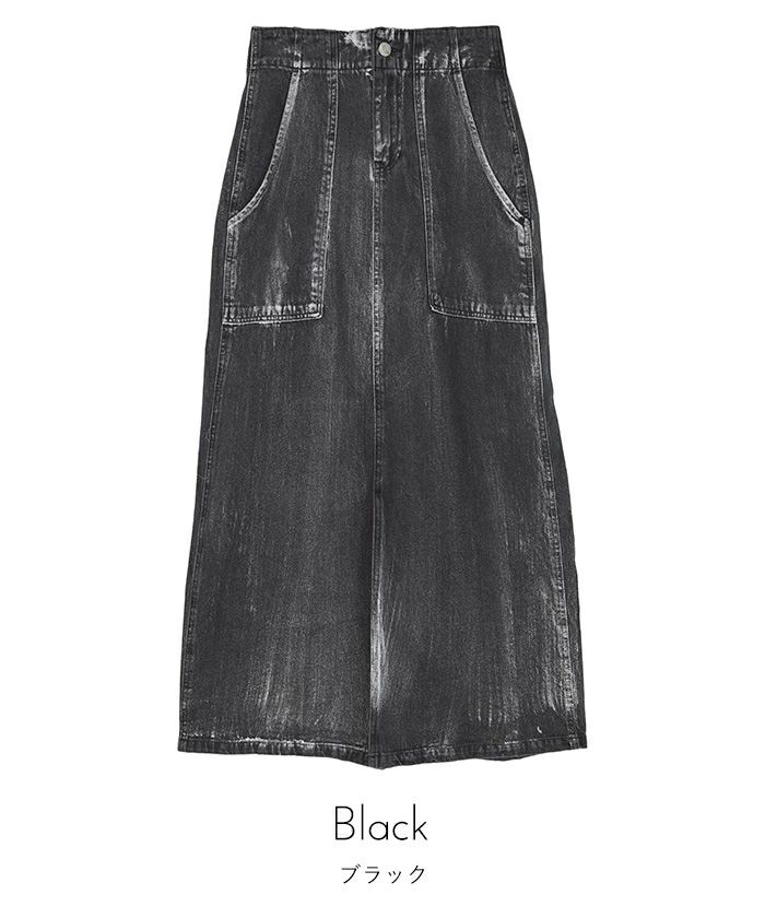・トレンド感のある箔加工が施された一癖あるデニムスカート。