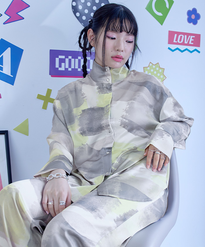 ・同素材のシャツとセットアップ着用もおすすめ。