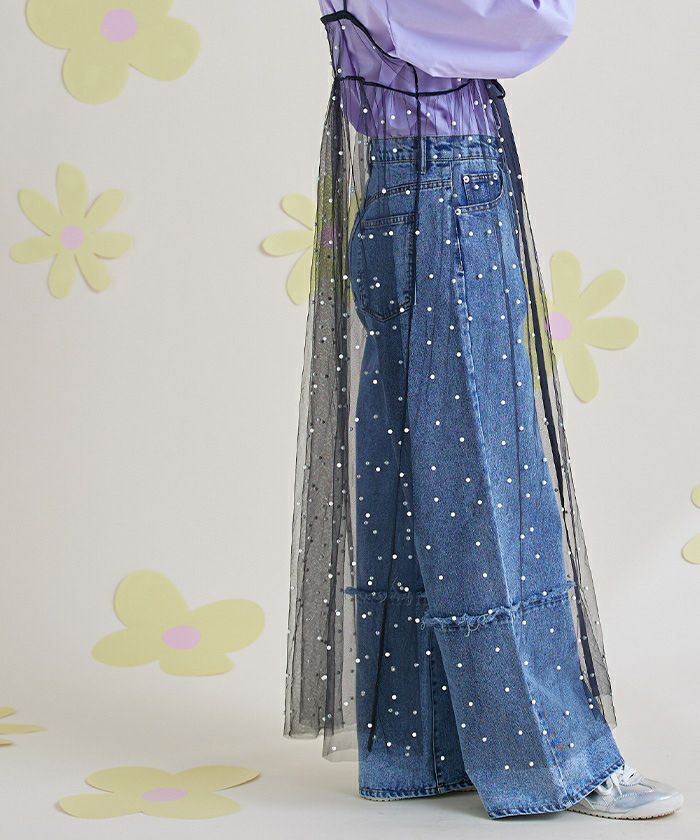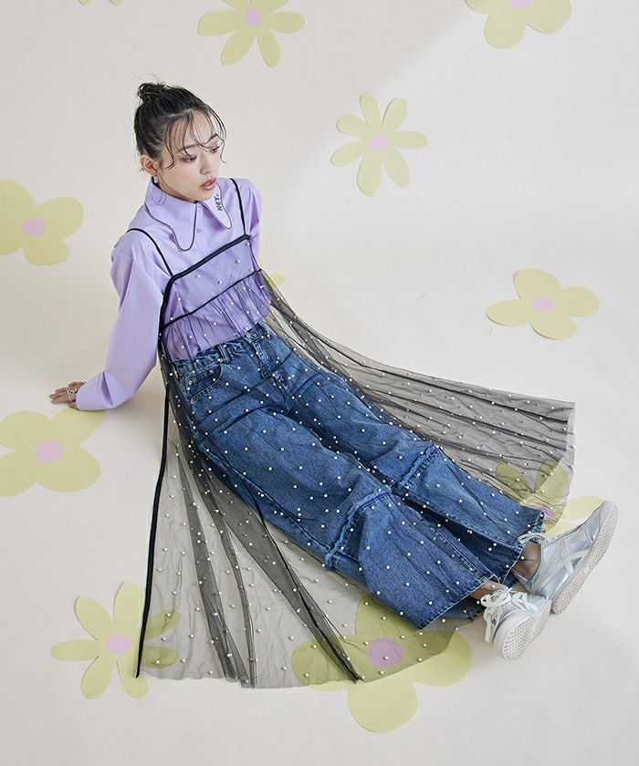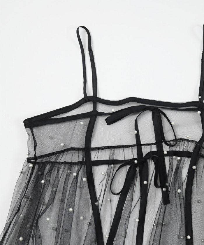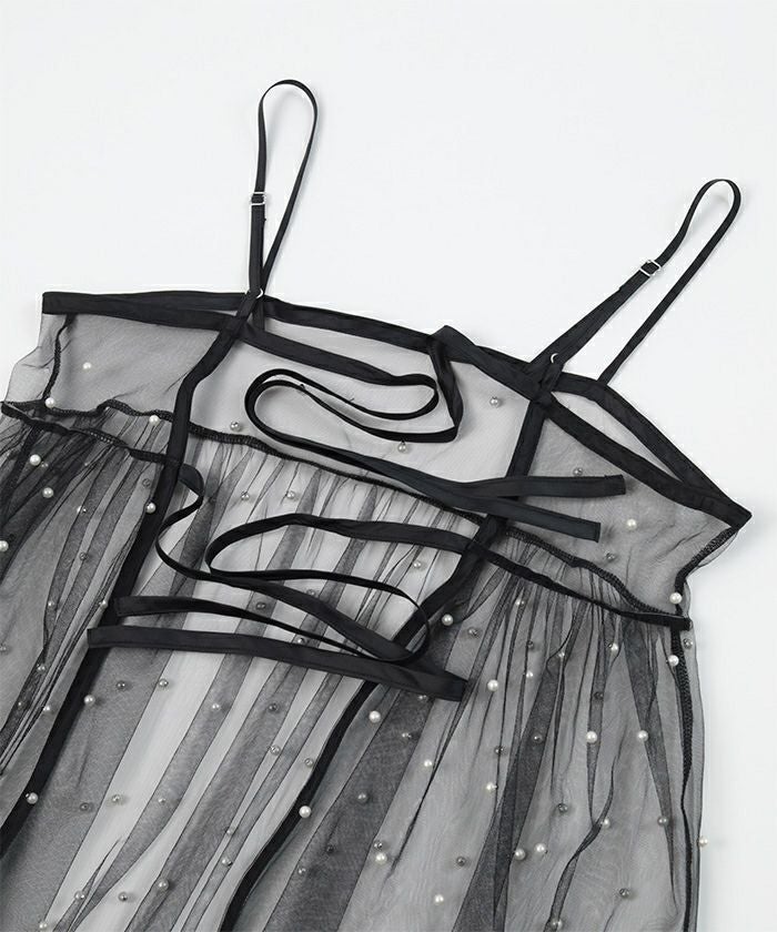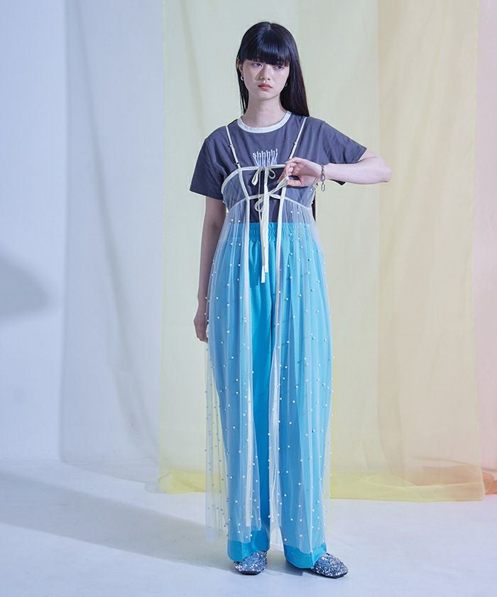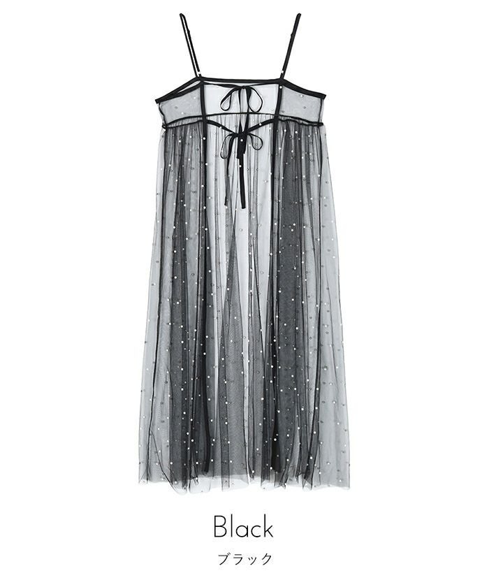 前後2wayパール付きチュールワンピース【miette ミエット】