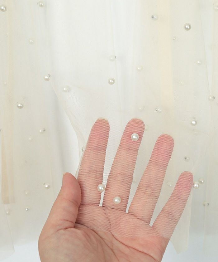 ・全体にパールを施したチュールワンピース。