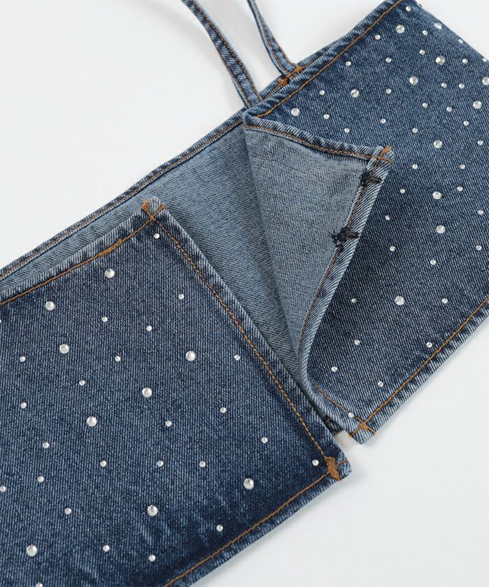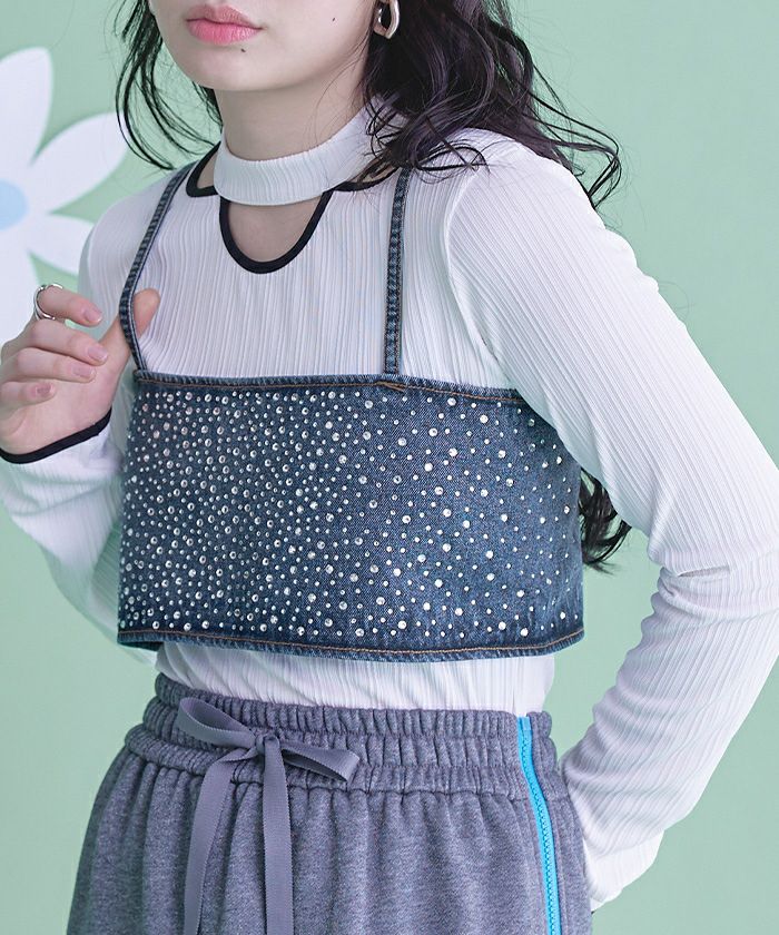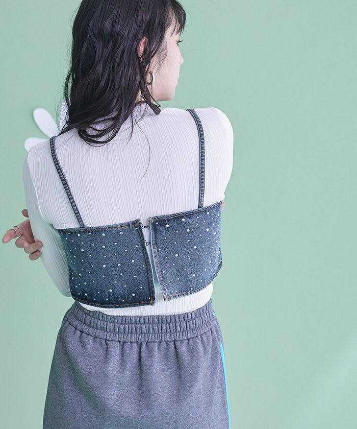 ・ラインストーンを散りばめたキラキラ感がかわいいデニムビスチェ。