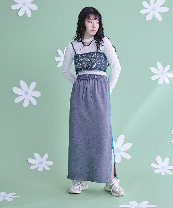 ラインストーンデニムビスチェ【miette ミエット】【メール便可/50】