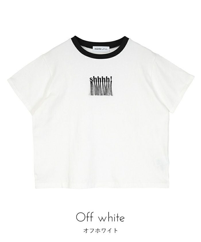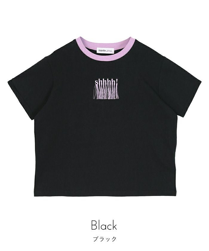 フリンジロゴ刺繍Tシャツ【miette ミエット】【メール便可/70】