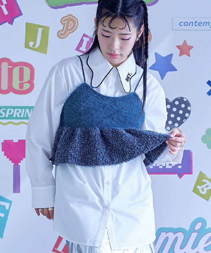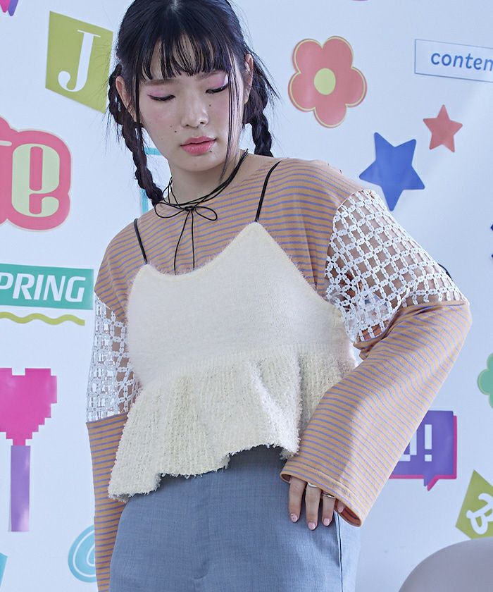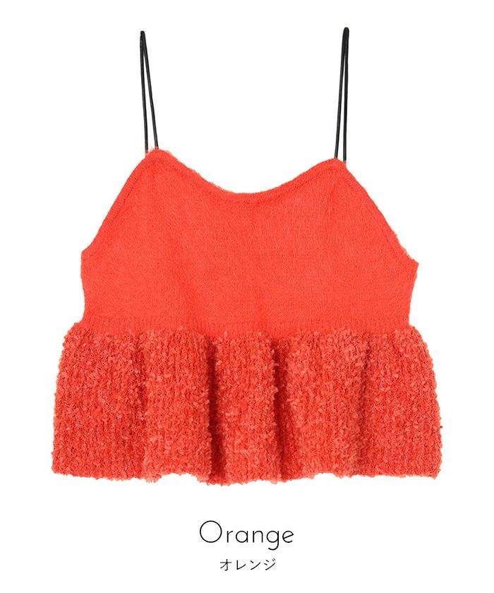 ・トレンドのシャギーヤーンとリボンヤーンを使用したビスチェ。