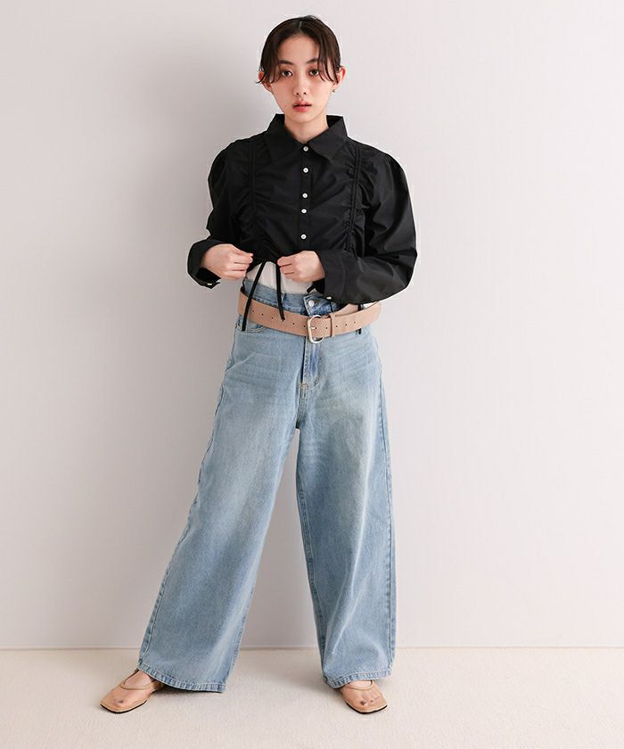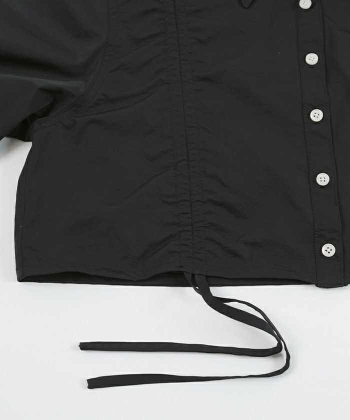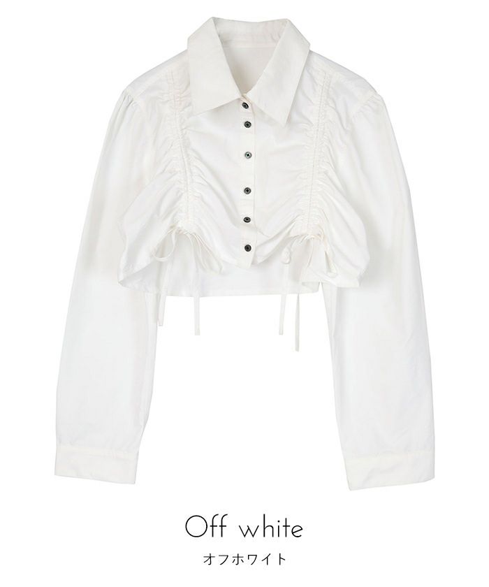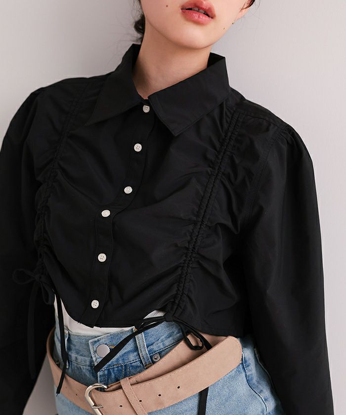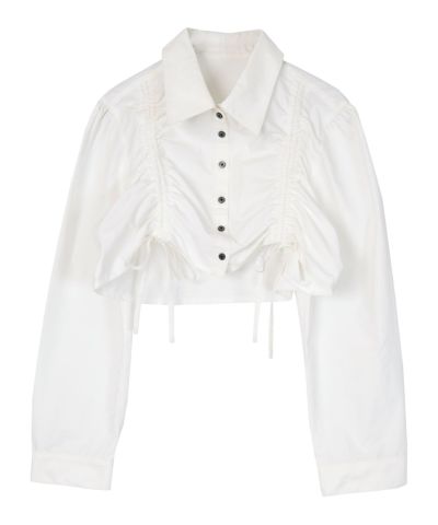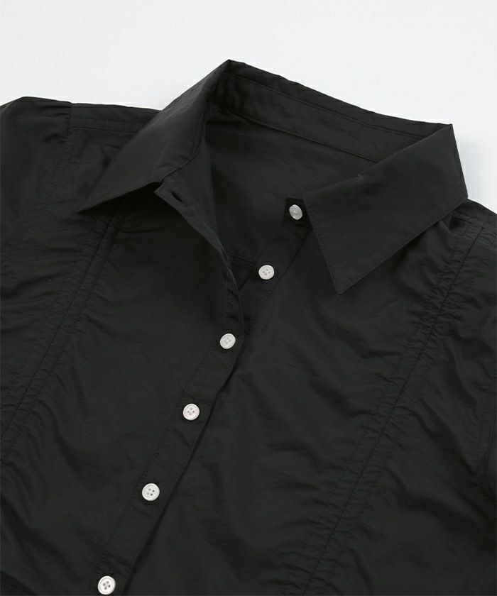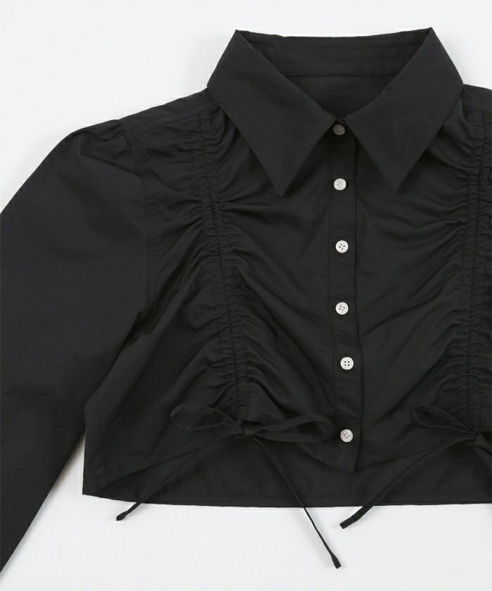 ・フロントのシャーリングデザインがポイントのクロップドシャツ。