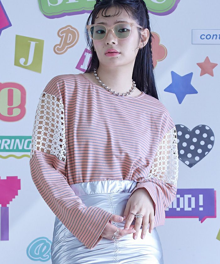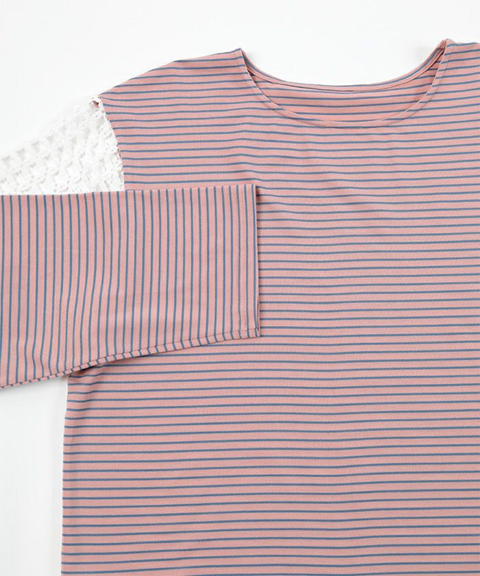 ・レース切替が程良い肌見せで抜け感を演出するカットソー。