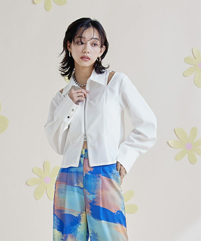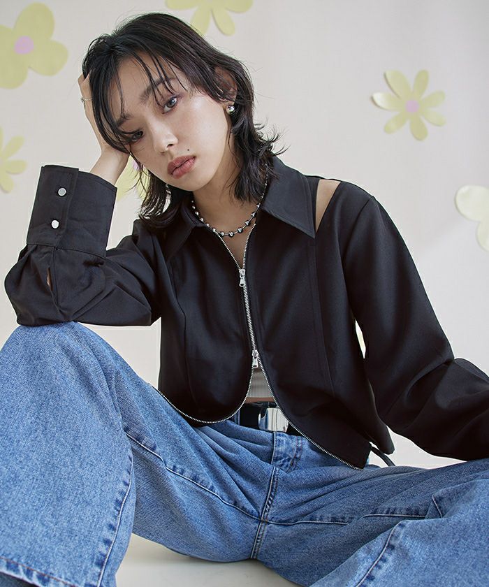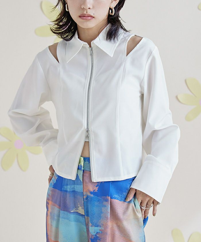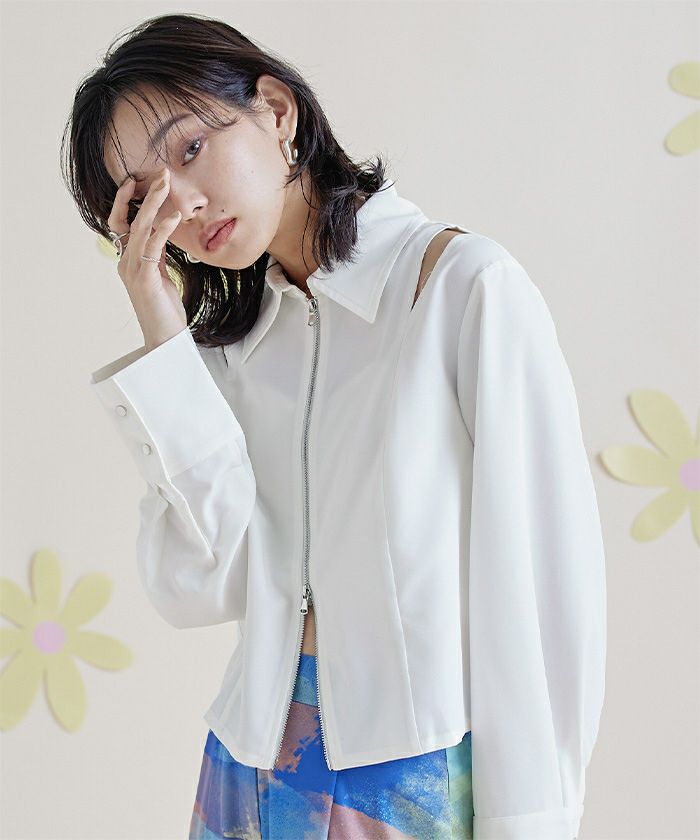 ショルダーカットアウトフロントジップシャツ【miette ミエット】【メール便可/100】