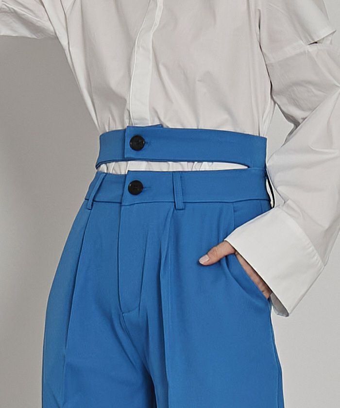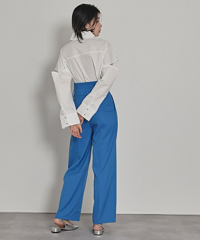 ・ダブルベルトが脚長効果を叶えるワイドパンツ。