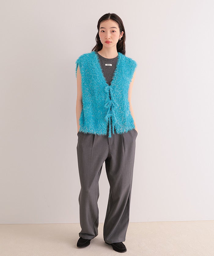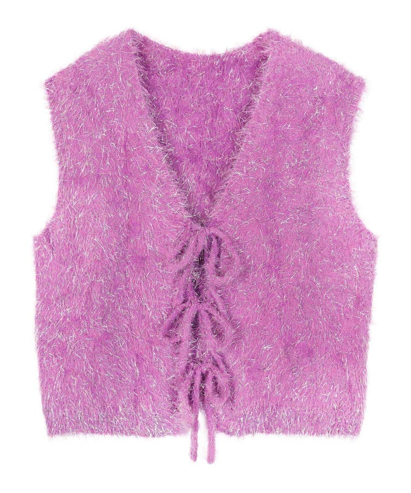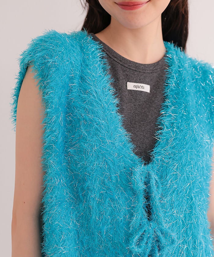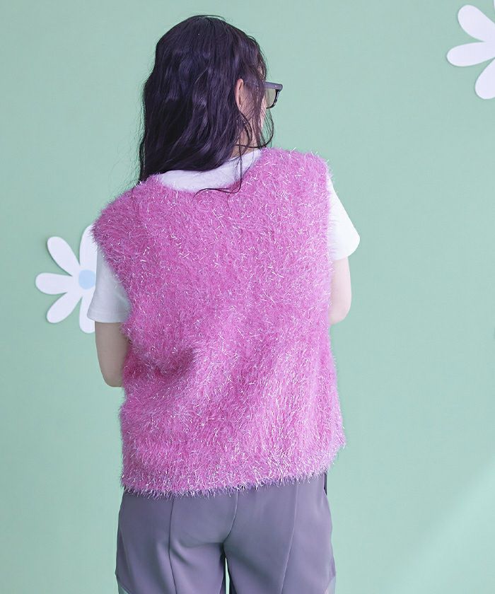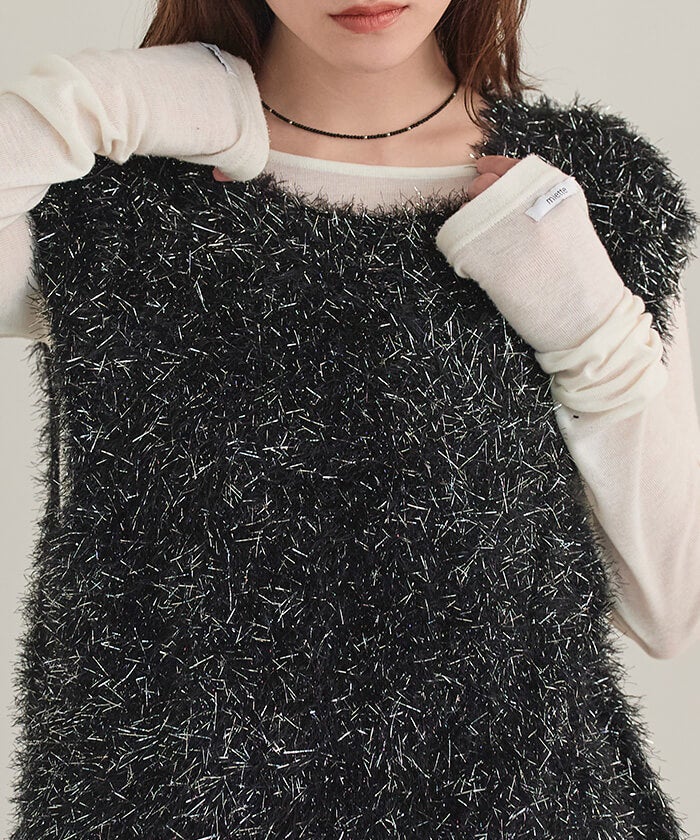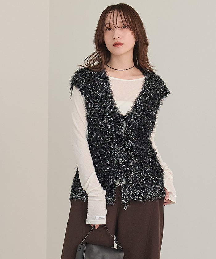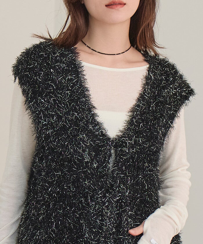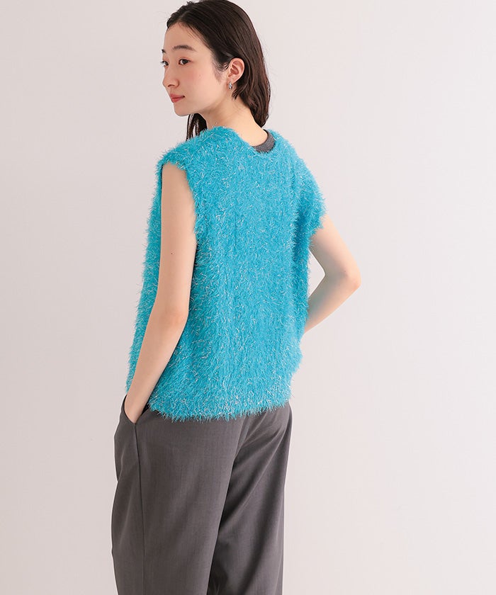 ・トレンド感のあるラメシャギー素材のニットベスト。