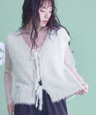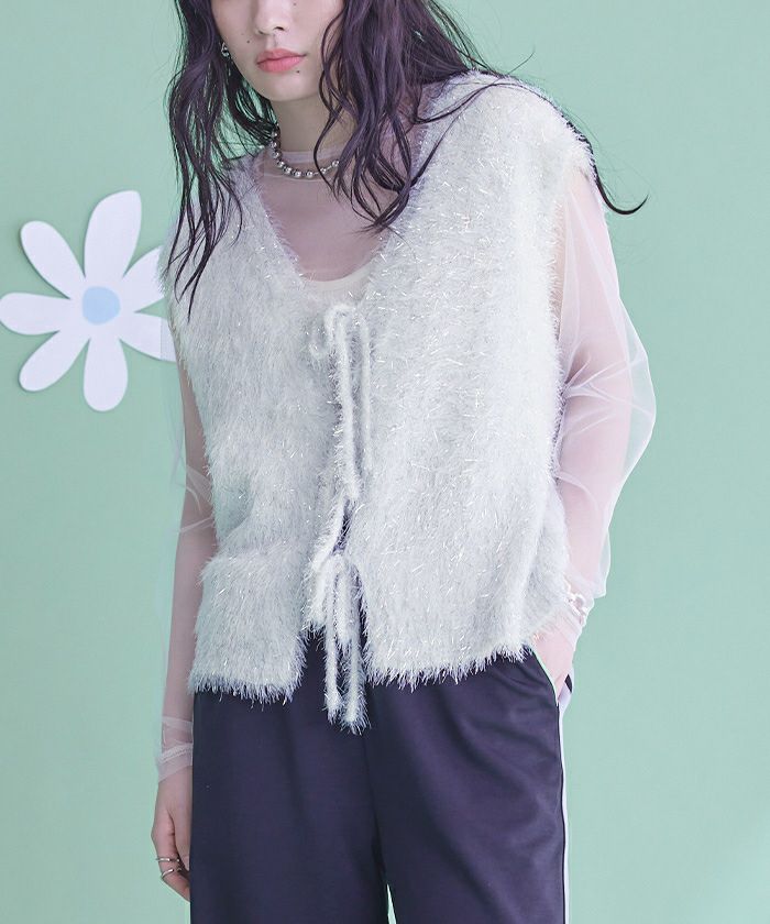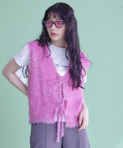 2wayリボンラメシャギーニットベスト【miette ミエット】