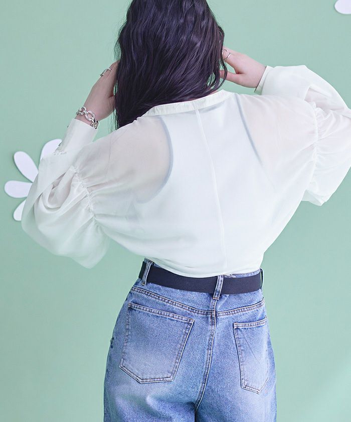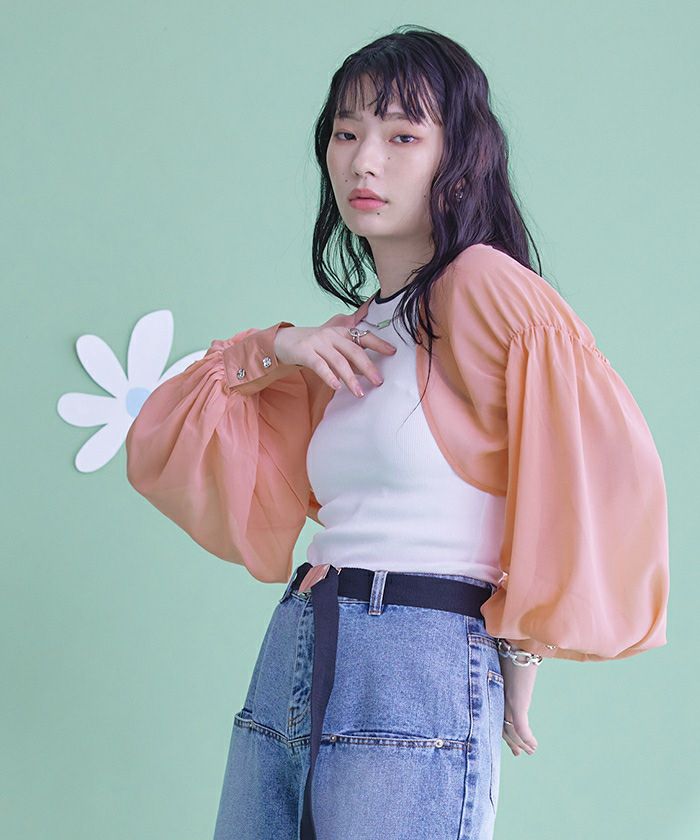 フロントチェーンボリュームスリーブシアーボレロ【miette ミエット】【メール便可/70】