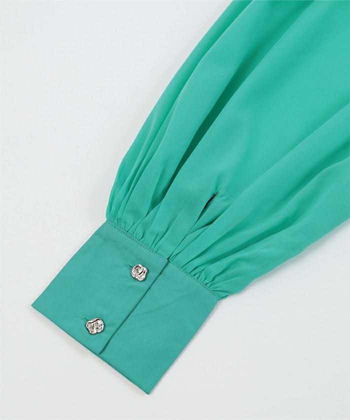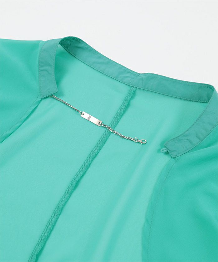 ・取り外しも可能なフロントのシルバーチェーンがアクセントになったシアーボレロ。