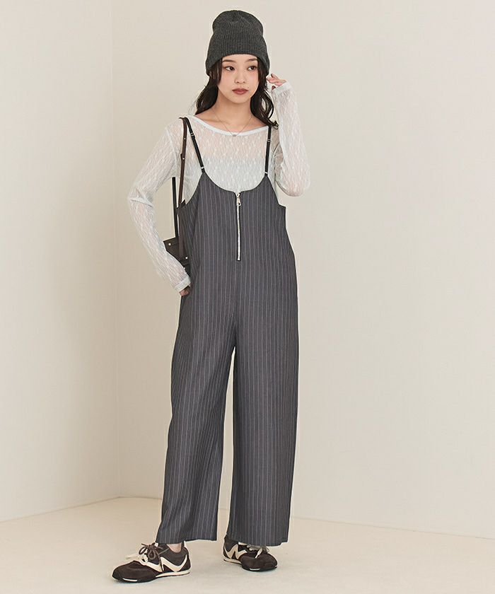 ピンストライプキャミソールオールインワン【miette ミエット】