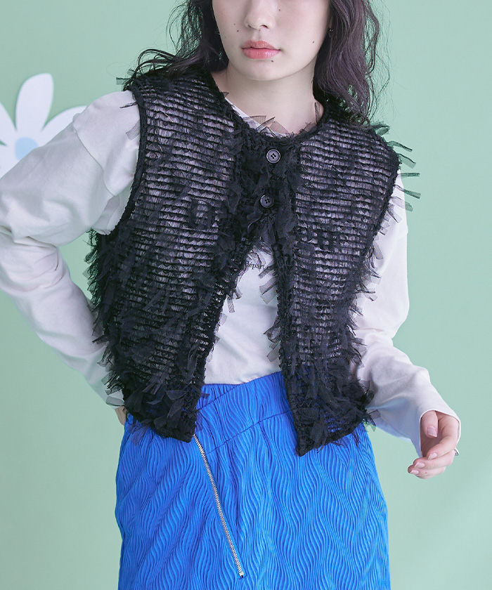 ウェーブ柄フロントジップスカート【miette ミエット】