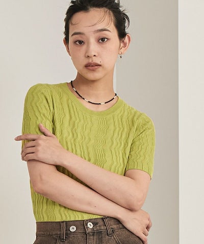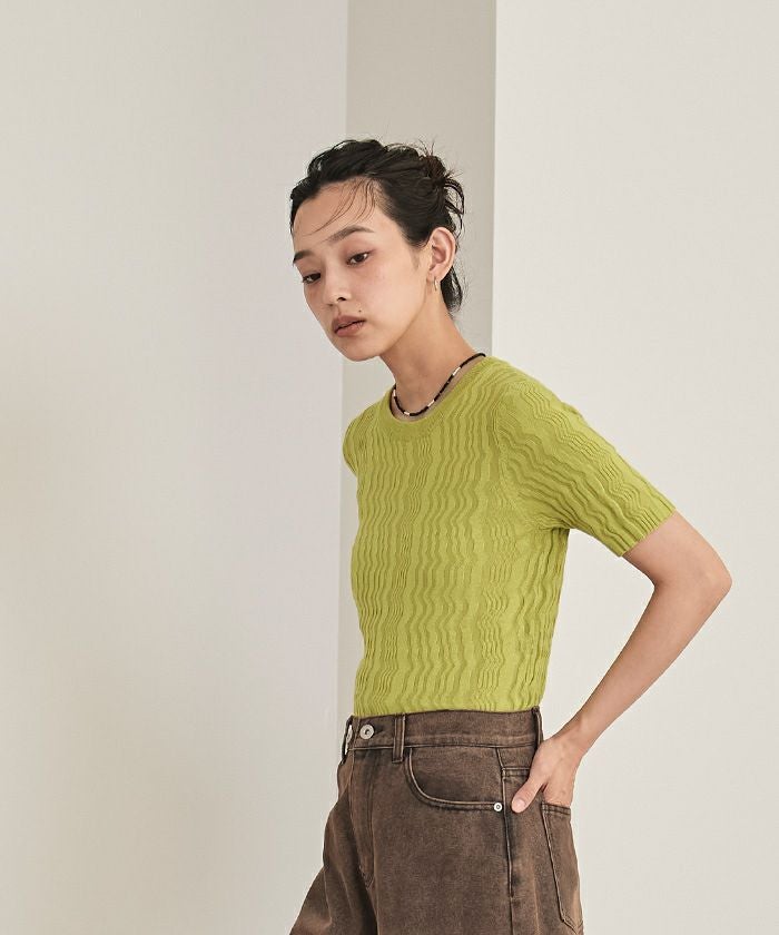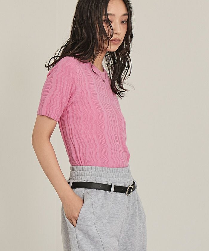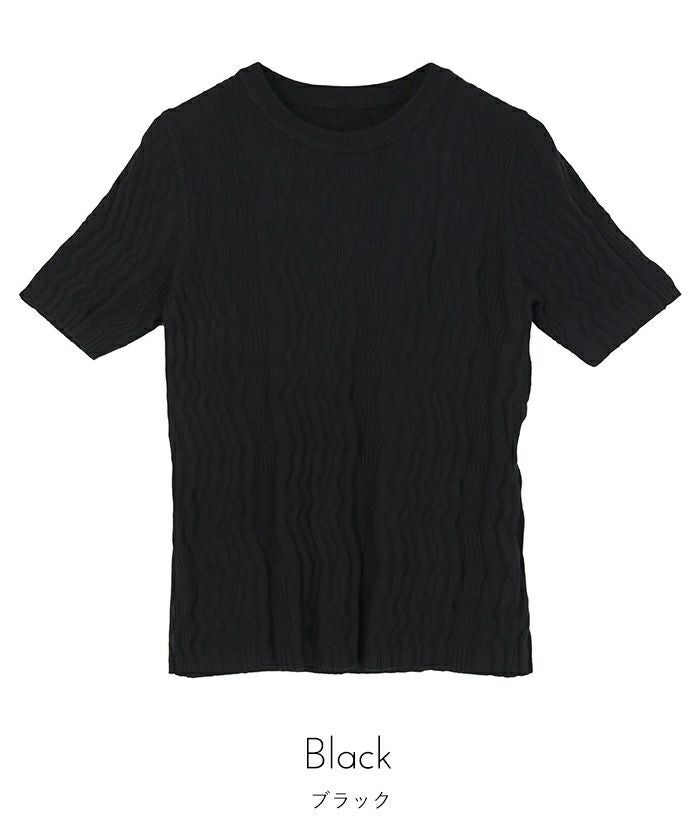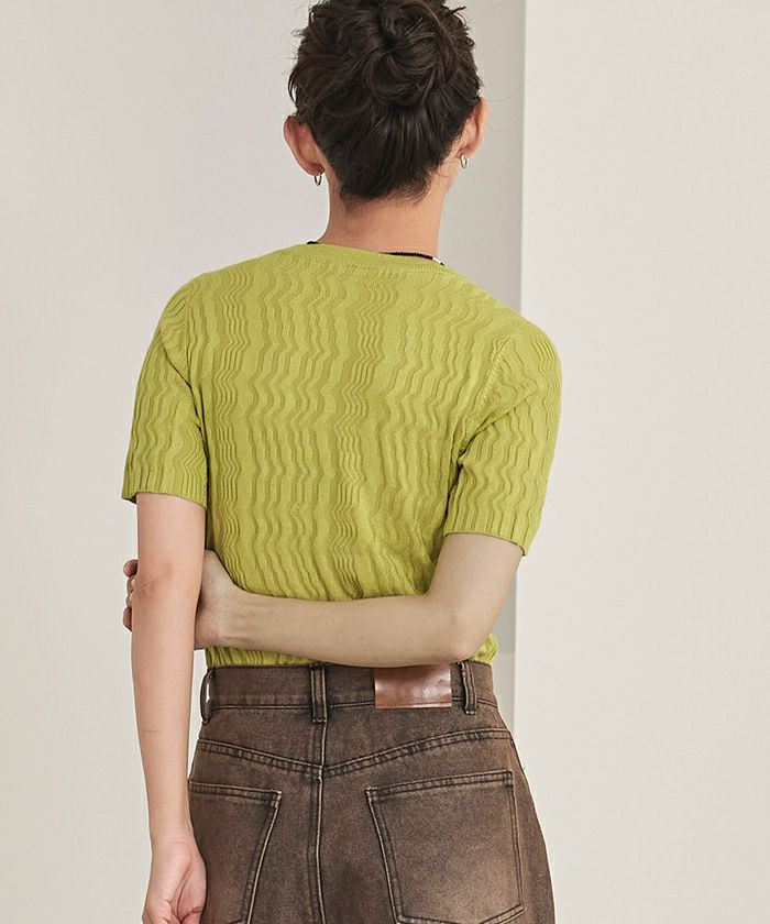ジグザグリブ半袖トップス【miette ミエット】【メール便可/80】