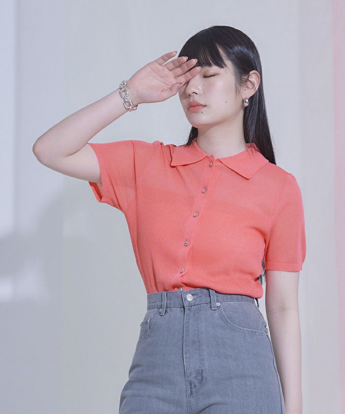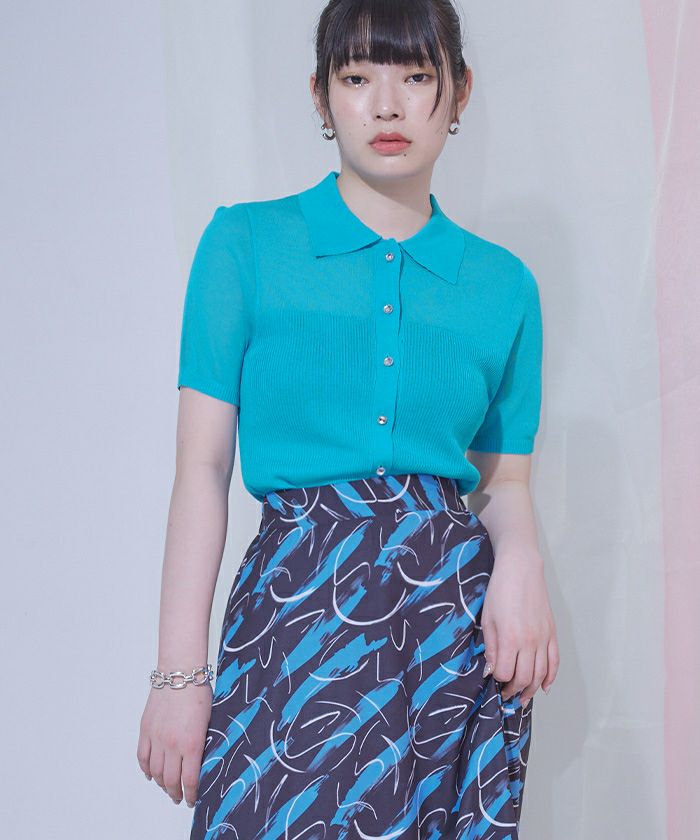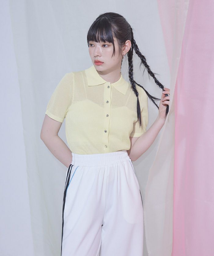 ビジューボタンシアーポロニット【miette ミエット】【メール便可/60】
