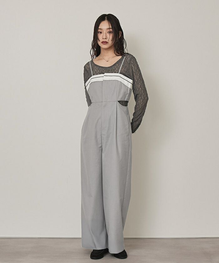 ・胸元のマーベルトデザインがおしゃれなオールインワン。