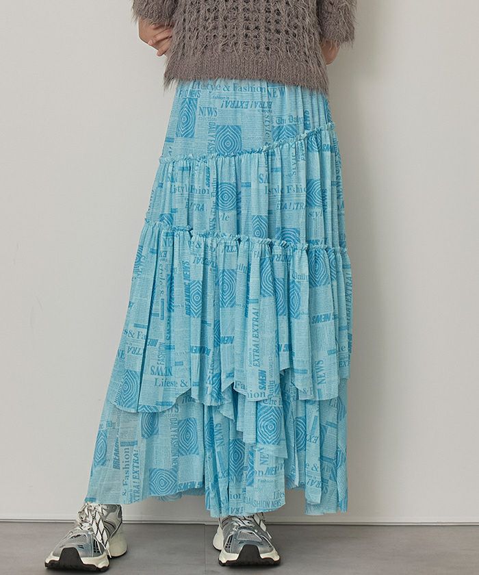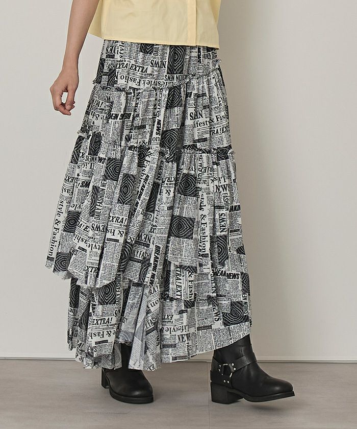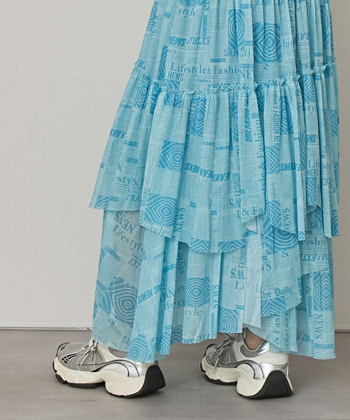 プリントチュールランダムティアードスカート【miette ミエット】