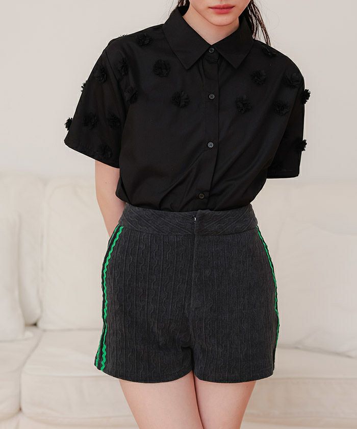 ・ストレッチの効いたジャガード生地を使用したショートパンツ。