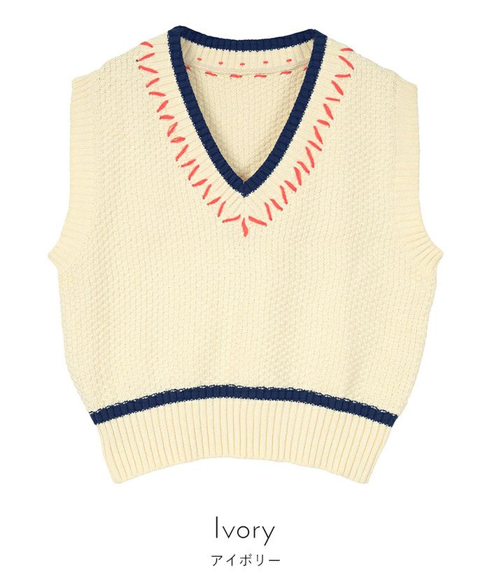 配色ステッチVネックベスト【miette ミエット】