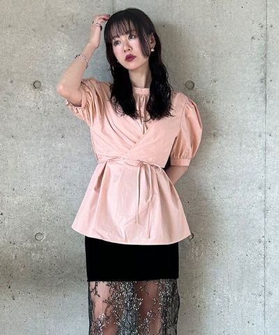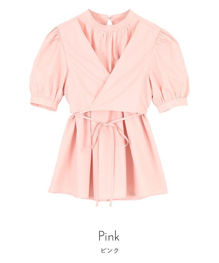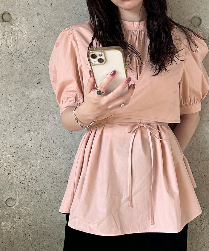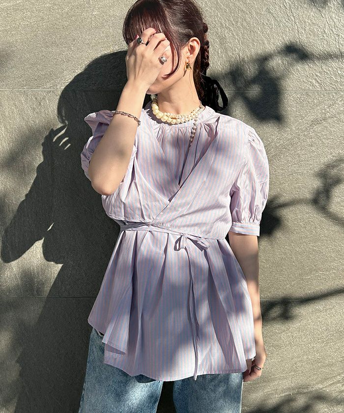 カシュクールパフスリーブブラウス【miette ミエット】【メール便可/100】