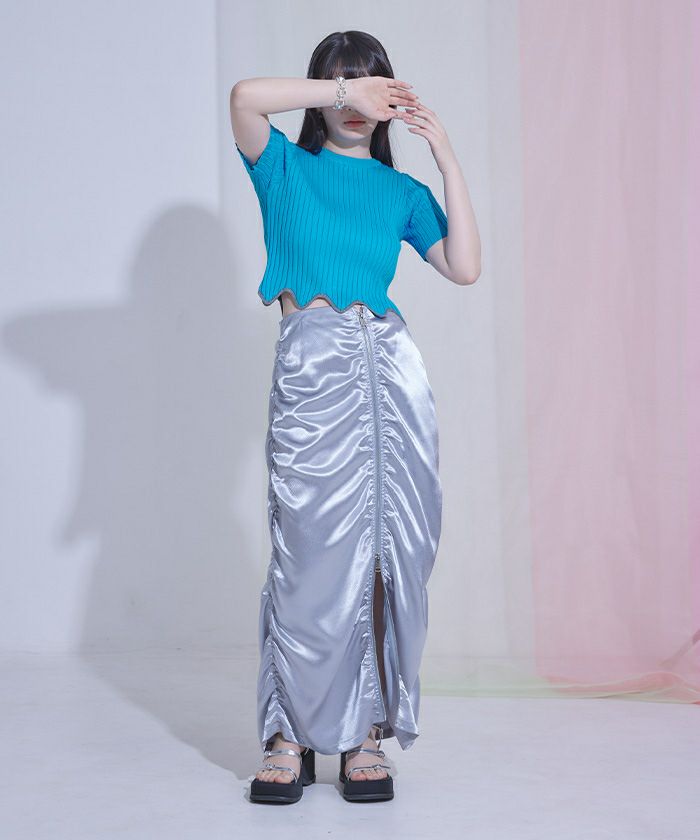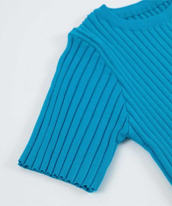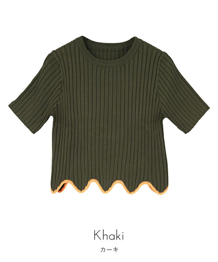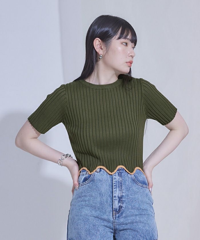 ・裾のウェーブラインがアクセントになったリブトップス。