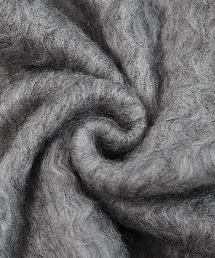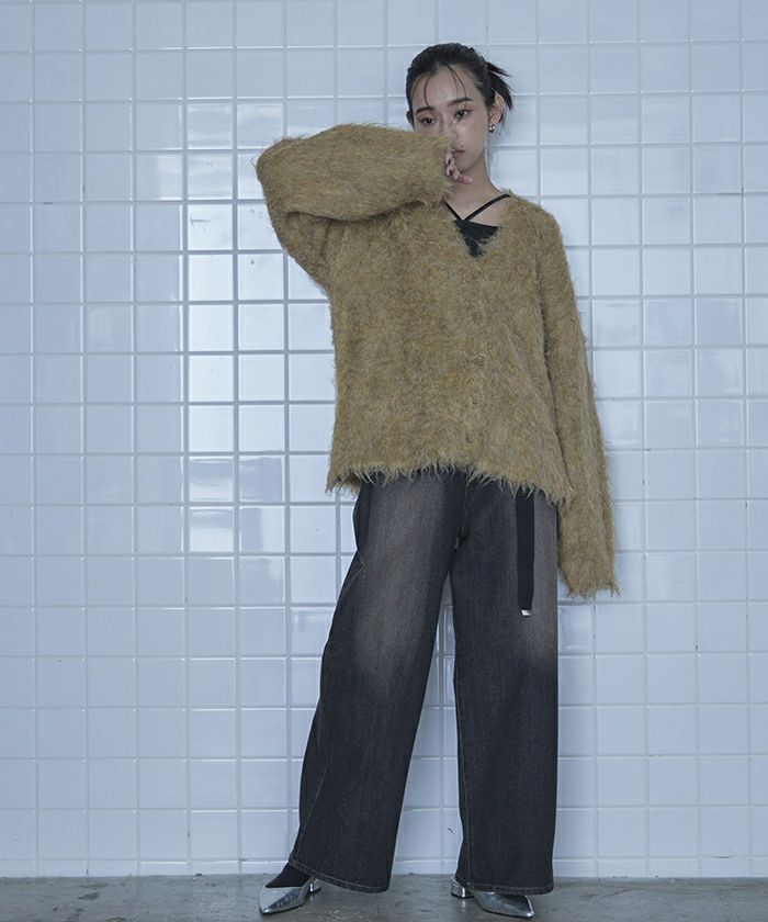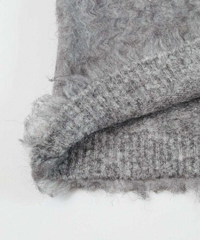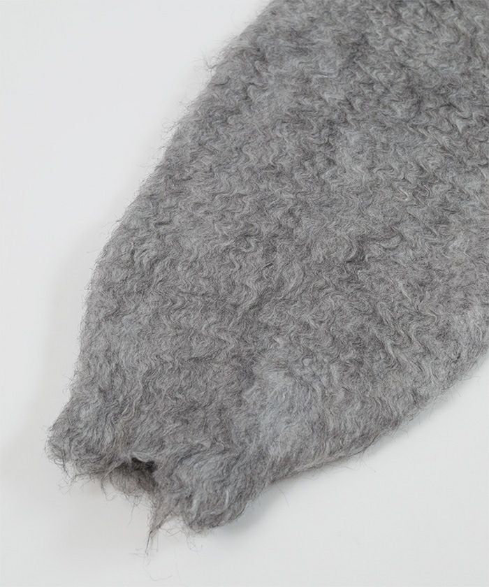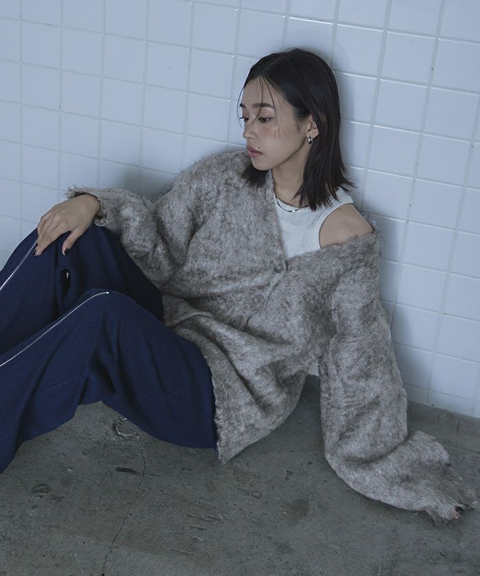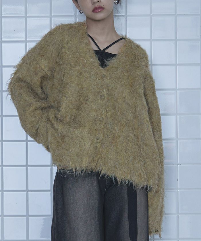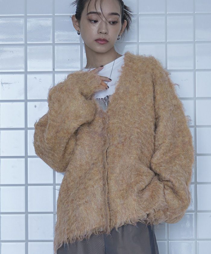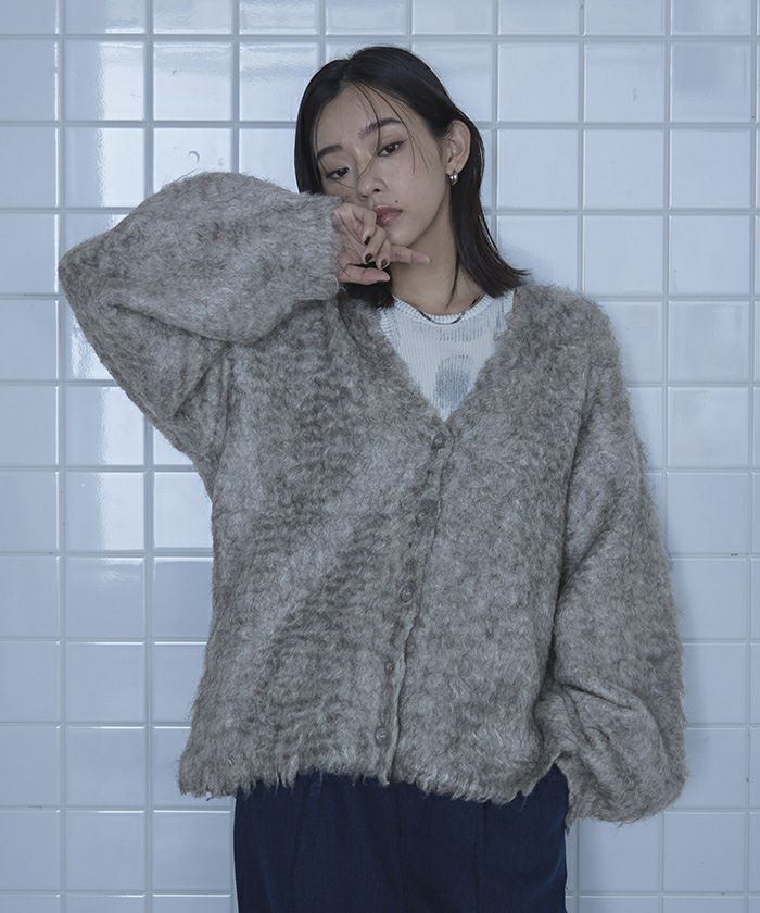 ・毛足が長めのシャギーと表面感のあるブークレが温かさたっぷりの主役級カーディガン。