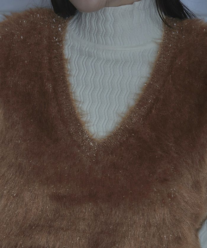 ・シャギーとラメの2種類の糸を使用したニットベスト