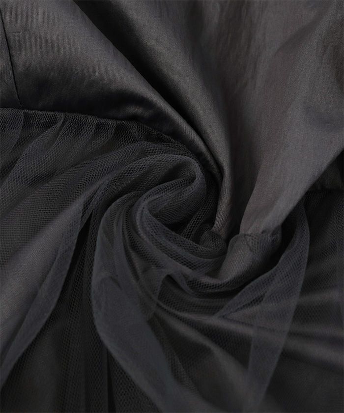 ・トレンド感のある微光沢のシャイニー素材×チュールドッキングが魅力