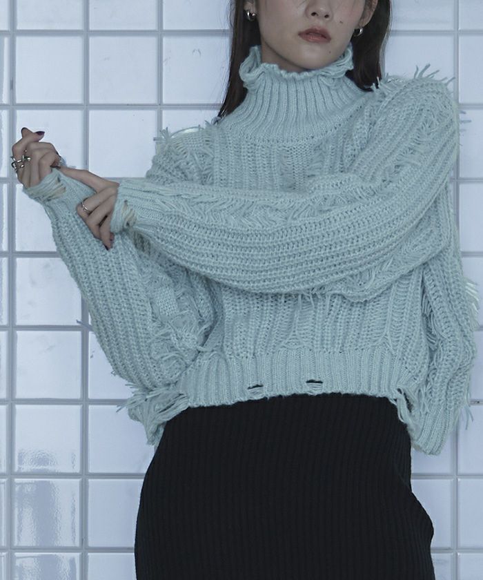 ・ダメージとフリンジデザインがポイントのニットプルオーバー