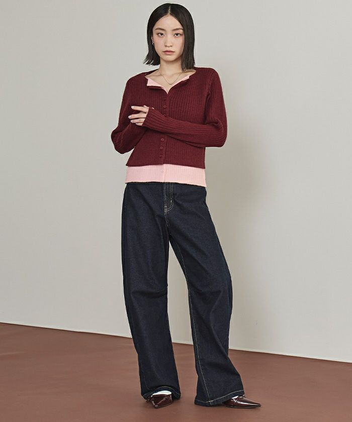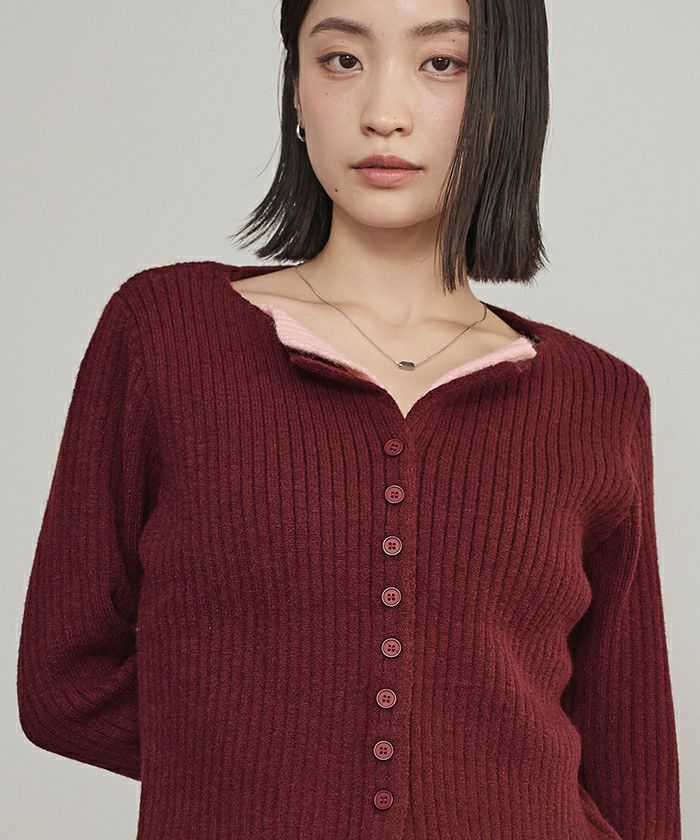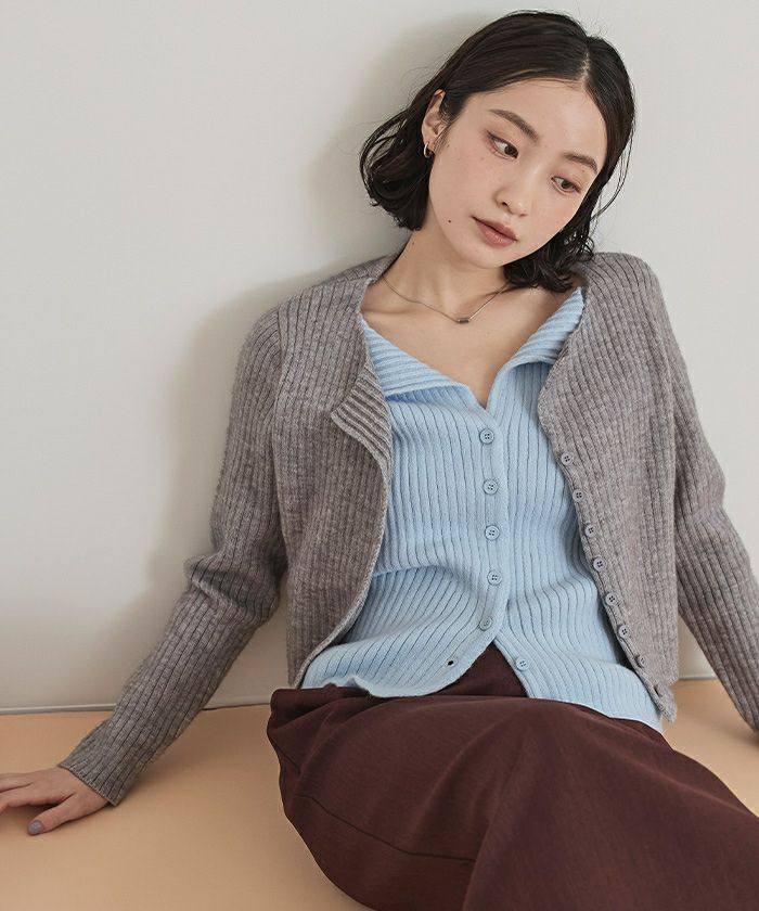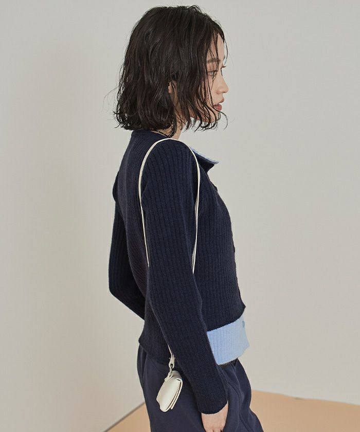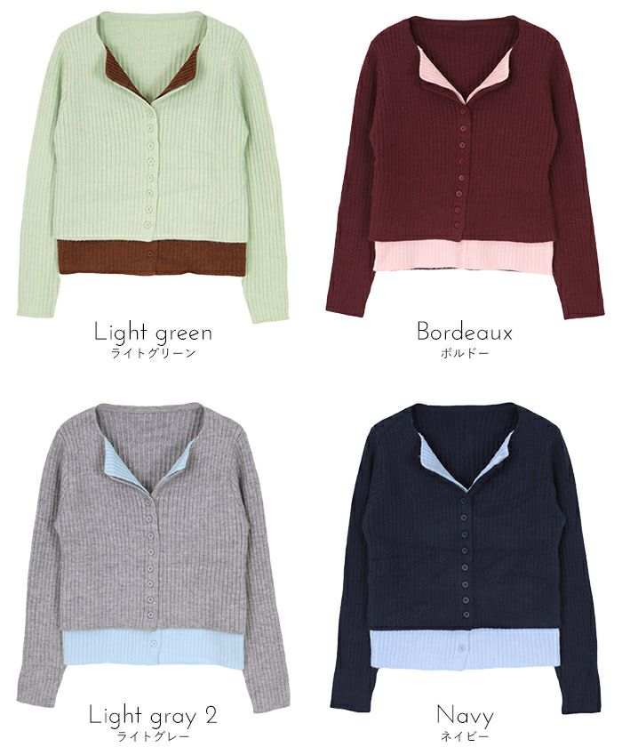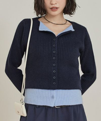 レイヤード配色ニットカーディガン【miette ミエット】