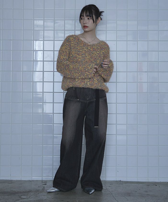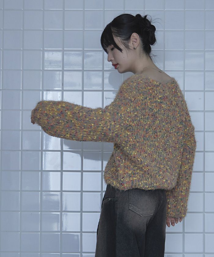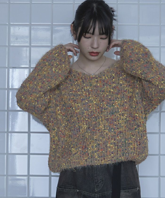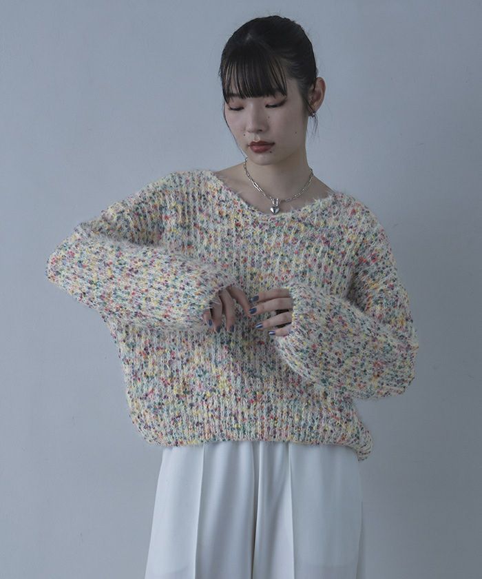 カラーネップオーバーサイズVネックニット【miette ミエット】