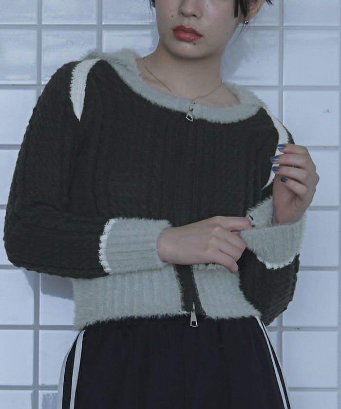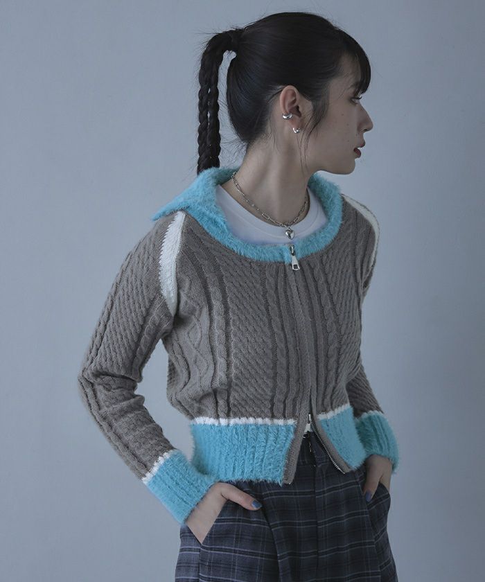 シャギー切り替えケーブルニット【miette ミエット】