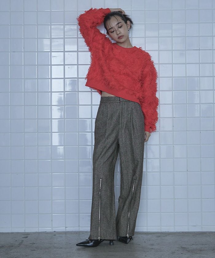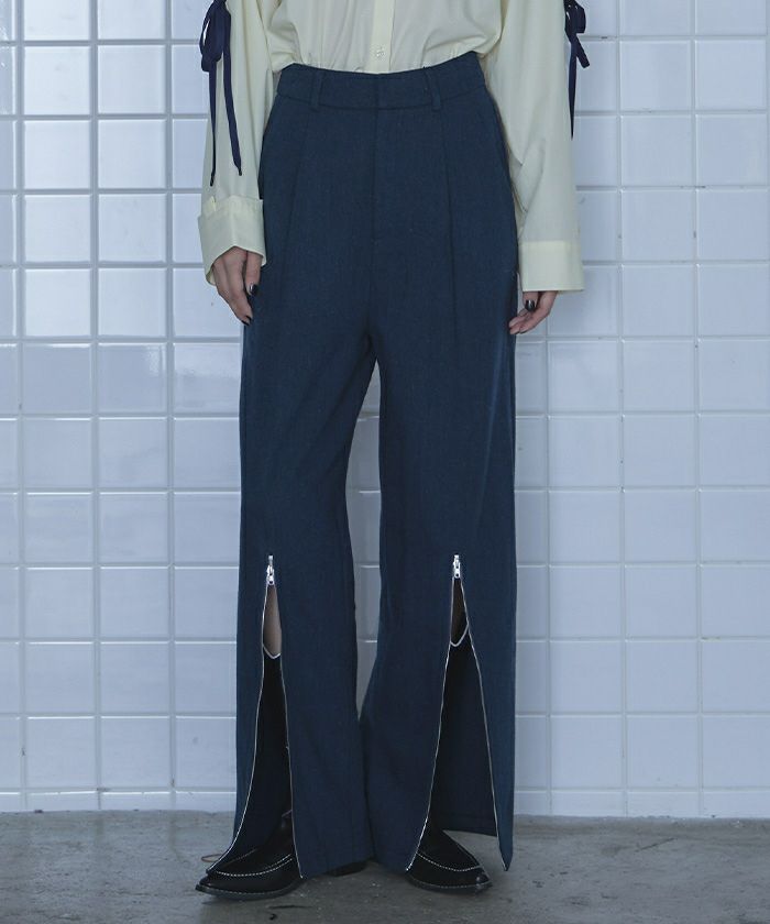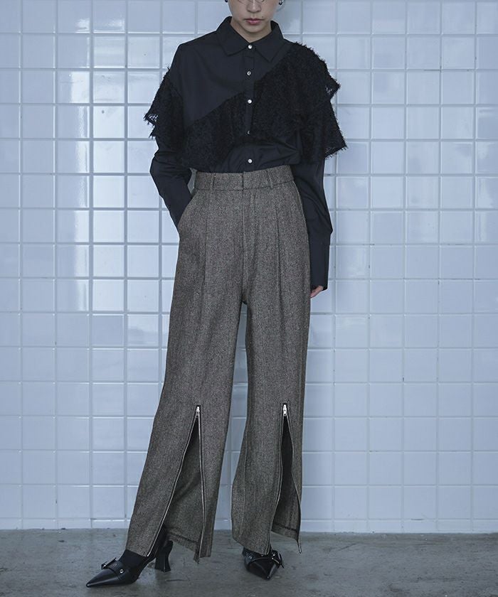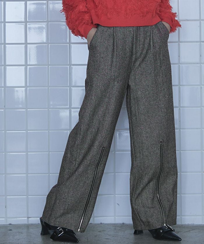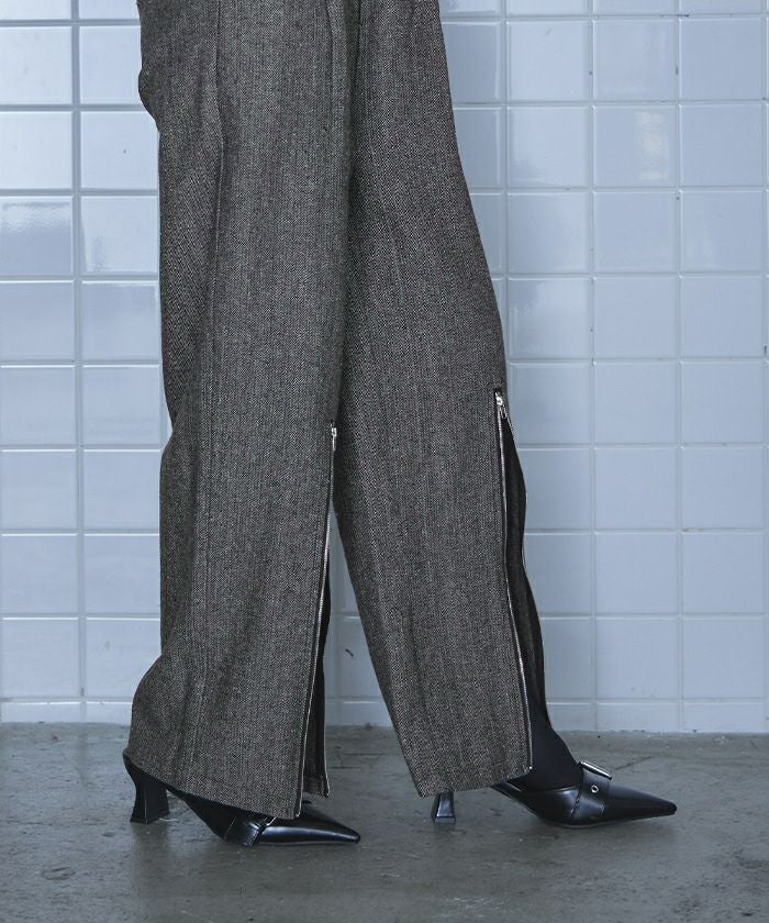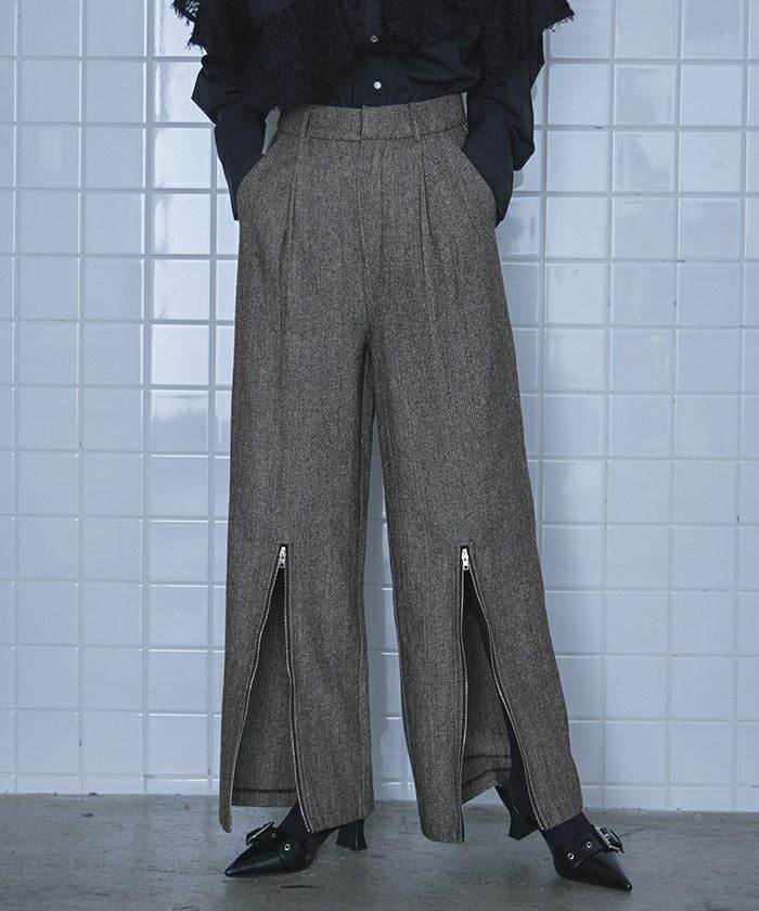 ヘリンボーンジップスリットワイドパンツ【miette ミエット】