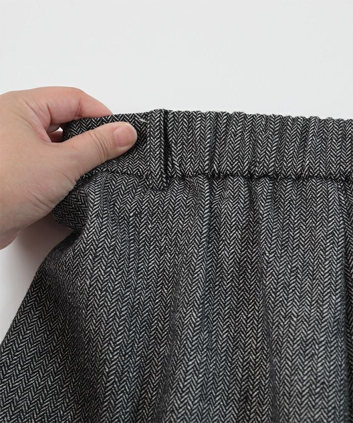 ・シックなヘリンボーン生地が魅力的スリットワイドパンツ
