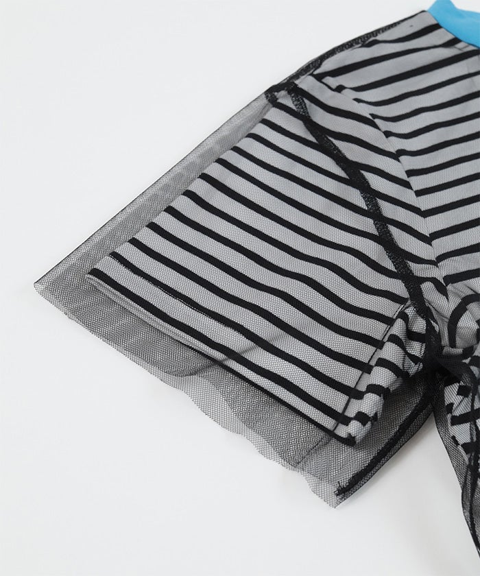 ・チュールの方が大きいサイズで、袖と裾が透けて抜け感をプラス。