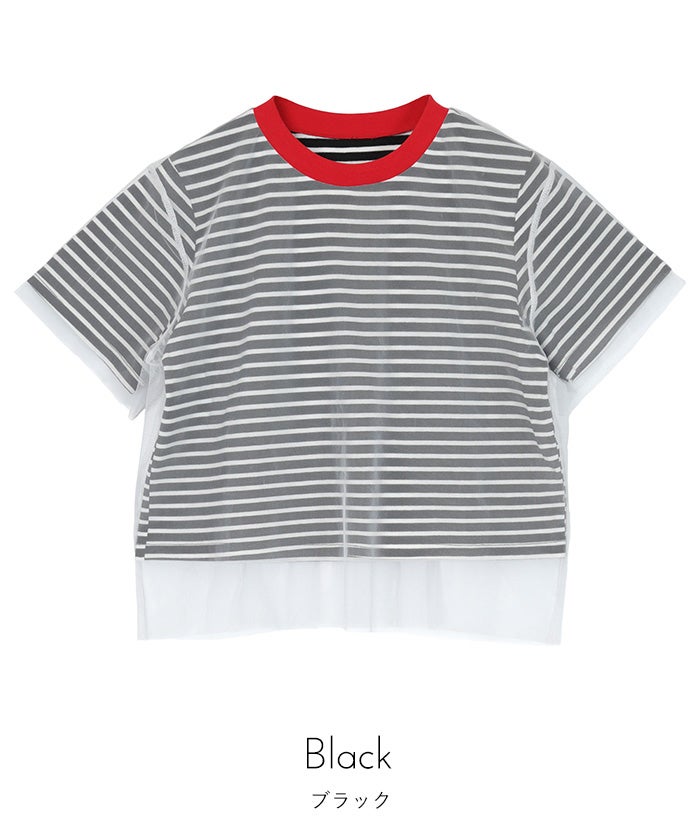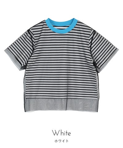 【miette】【期間限定★3000均一】 チュールレイヤードボーダーTシャツ【miette ミエット】【メール便可/80】