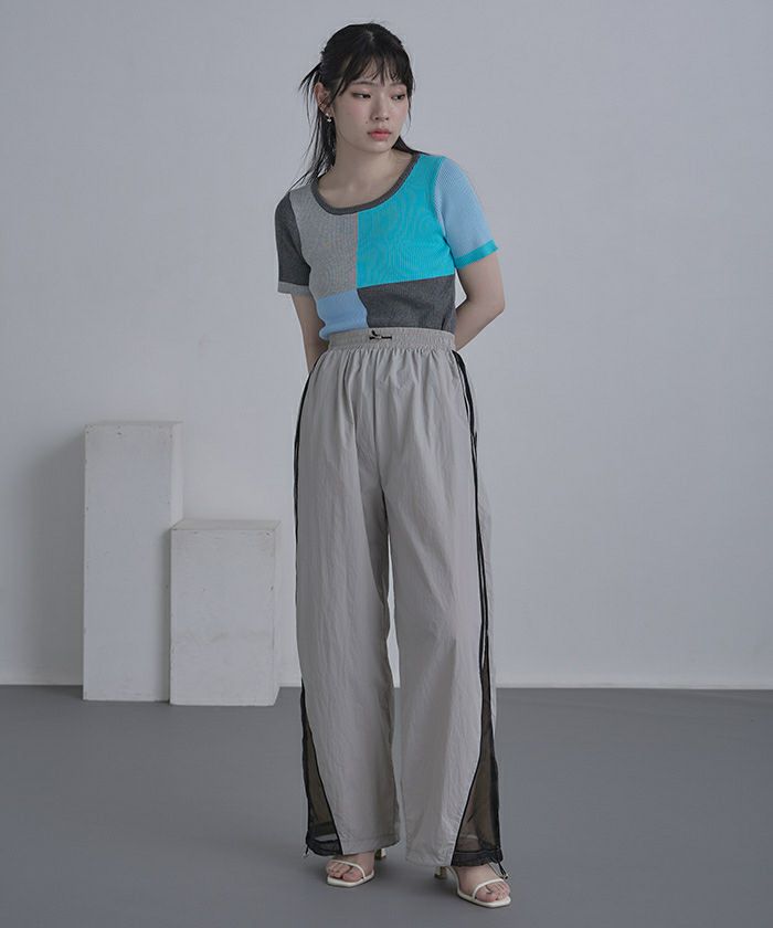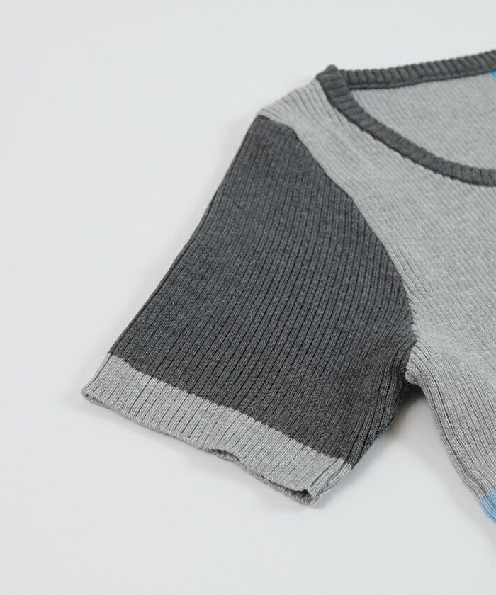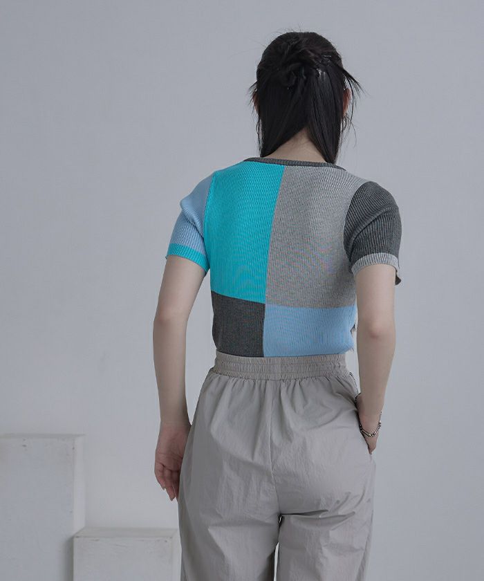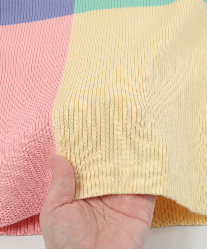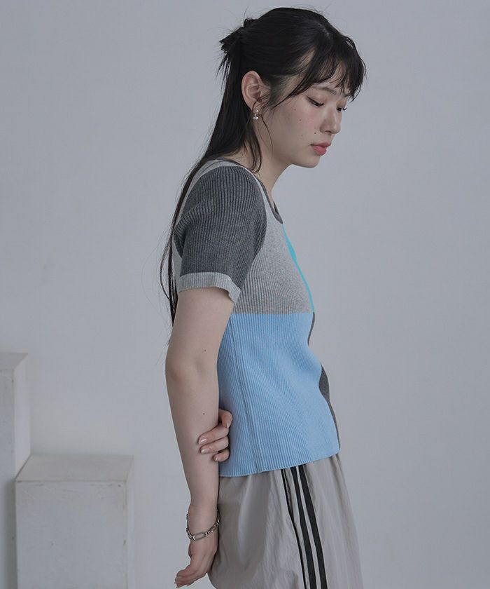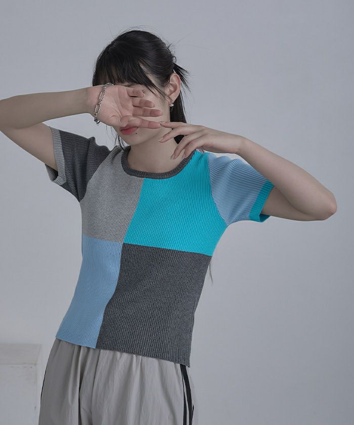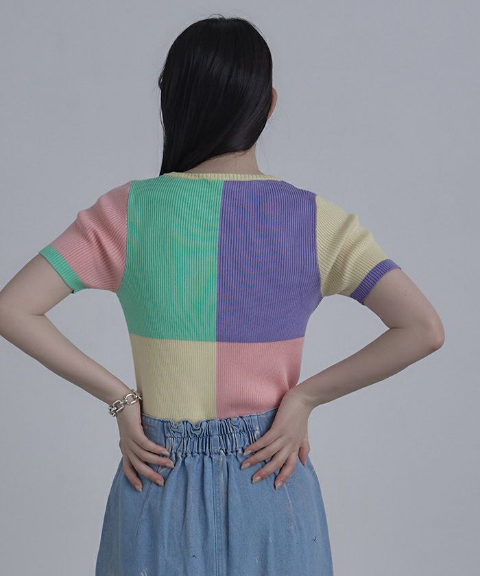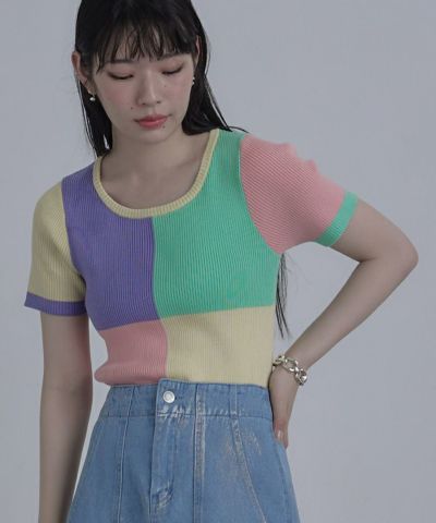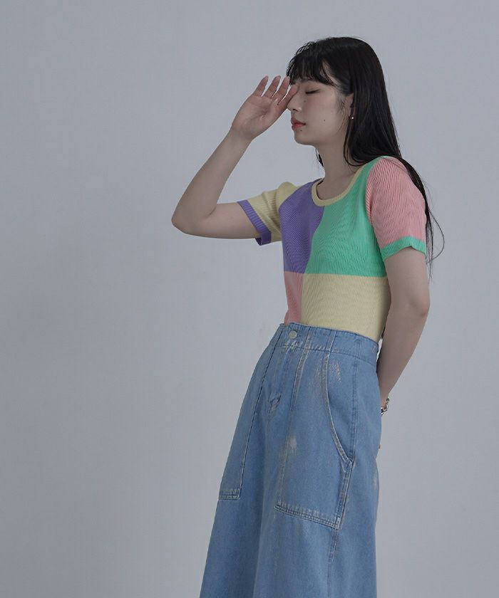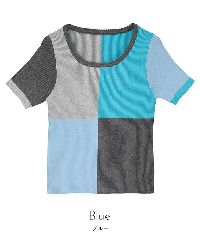カラーパネル半袖リブトップス【miette ミエット】【メール便可/80】