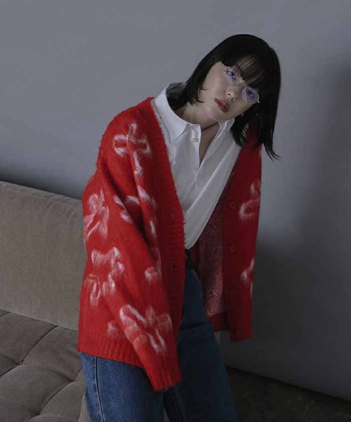 ・トレンドのジャカードで表現されたフラワー柄がポイントのニットカーディガン。